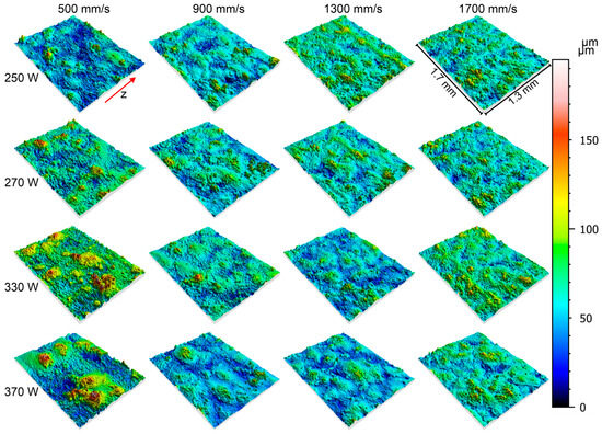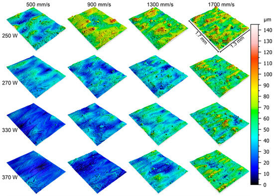 4.1. Effect of Processing Parameters on Topography