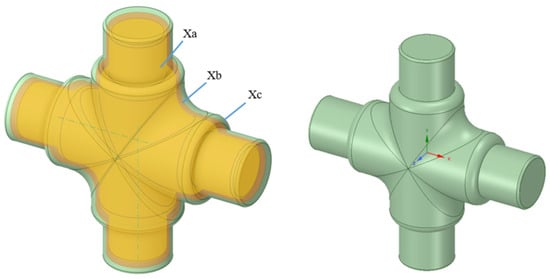 Figure 26 illustrates an example of irregularities encountered when reconstructing a preform from backtracked material points for the cross-joint. Surface defects can result from multiple factors, including insufficient point cloud density, mesh distortion during forging simulations, multi-valued material flow paths, and limitations inherent to CAD modeling platforms.