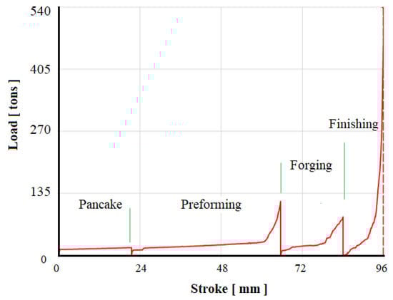 Forging load, preforming, and final forging.