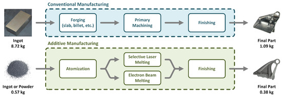 - Swetha, R.; Siva Rama Krishna, L.; Hari Sai Kiran, B.; Ravinder Reddy, P.; Venkatesh, S. Comparative Study on Life Cycle Assessment of Components Produced by Additive and Conventional Manufacturing Process. Mater. Today Proc. 2022, 62, 4332–4340. [Google Scholar] [CrossRef]