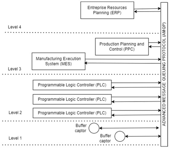 The Production Planning and Control (PPC) system as a Level 3 control component interfaces with or will be embedded within the Manufacturing Execution System. Using the Advanced Message Queuing Protocol [19]—typically adopted in modern production control systems—PPC monitors buffer levels in real time and triggers replenishments when inventory falls below reorder points. Additionally, the PPC system interacts with Enterprise Resource Planning systems to access real-time customer demand data.