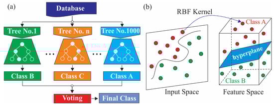 Typical workflow of the (a) RF and (b) SVM classifiers.