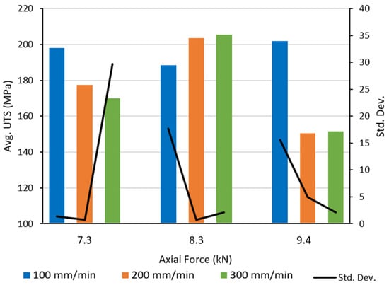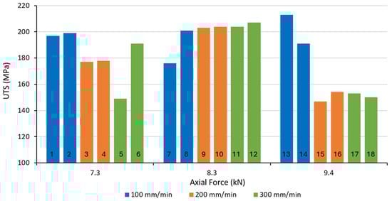 - Taguchi analysis showed axial force had a greater effect on UTS than feed rate.