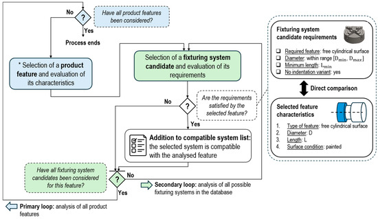 The workflow for Step a is illustrated at the top of Figure 3. The initial task consists of defining the problem and specifying the design requirements. Traditionally, this information is embedded in technical drawings, process sheets, or machine specifications. However, much of it can now be extracted directly from enriched CAD models by adopting MBD strategies. This approach improves documentation efficiency, reduces data duplication, and facilitates the use of machine-readable information, enabling advanced Levels of Automation (LoA). Additional considerations include available assets, operational constraints, and production throughput requirements.