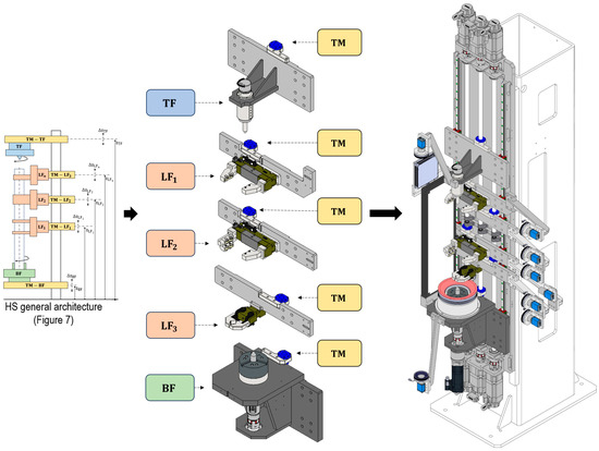 - Step d: implementation and integration (Section 3.4). In the final phase, the detailed engineering, manufacturing, and physical integration of the HS into the inspection station are carried out. This includes both functional and mechanical integration, ensuring that all system components operate cohesively within the vision-based RIM architecture.