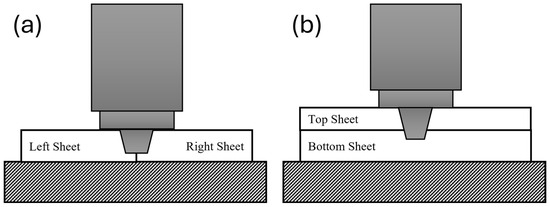 Diagram of (a) butt configuration and (b) lap configuration friction stir welding.