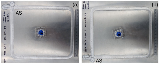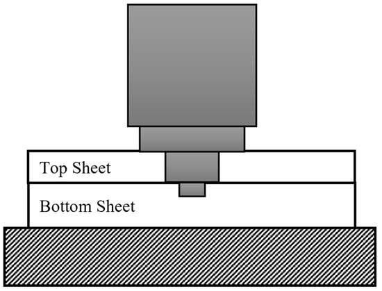 The weld configurations were inspired by the work performed by Buffa et al. [20] and D’Urso et al. [21]. In each configuration, the AS of the weld was in different areas of the top sheet. The sheets in both weld configurations were positioned to create a 38 mm area of overlap between the bottom and top sheets with the weld made in the center of the overlap area.