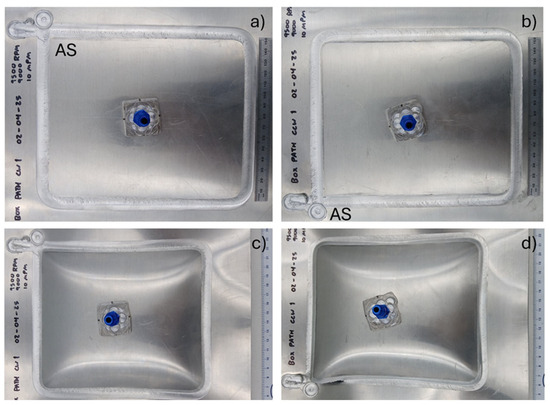 Three main setups were used to perform testing throughout the duration of this study. Figure 7 depicts a setup later denoted as “parameter set up” or “box path set up”. The setup was clamped around the perimeter with a weld area of 250 mm × 300 mm.