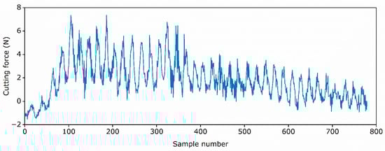 The time series data of the cutting force in the cutting process.