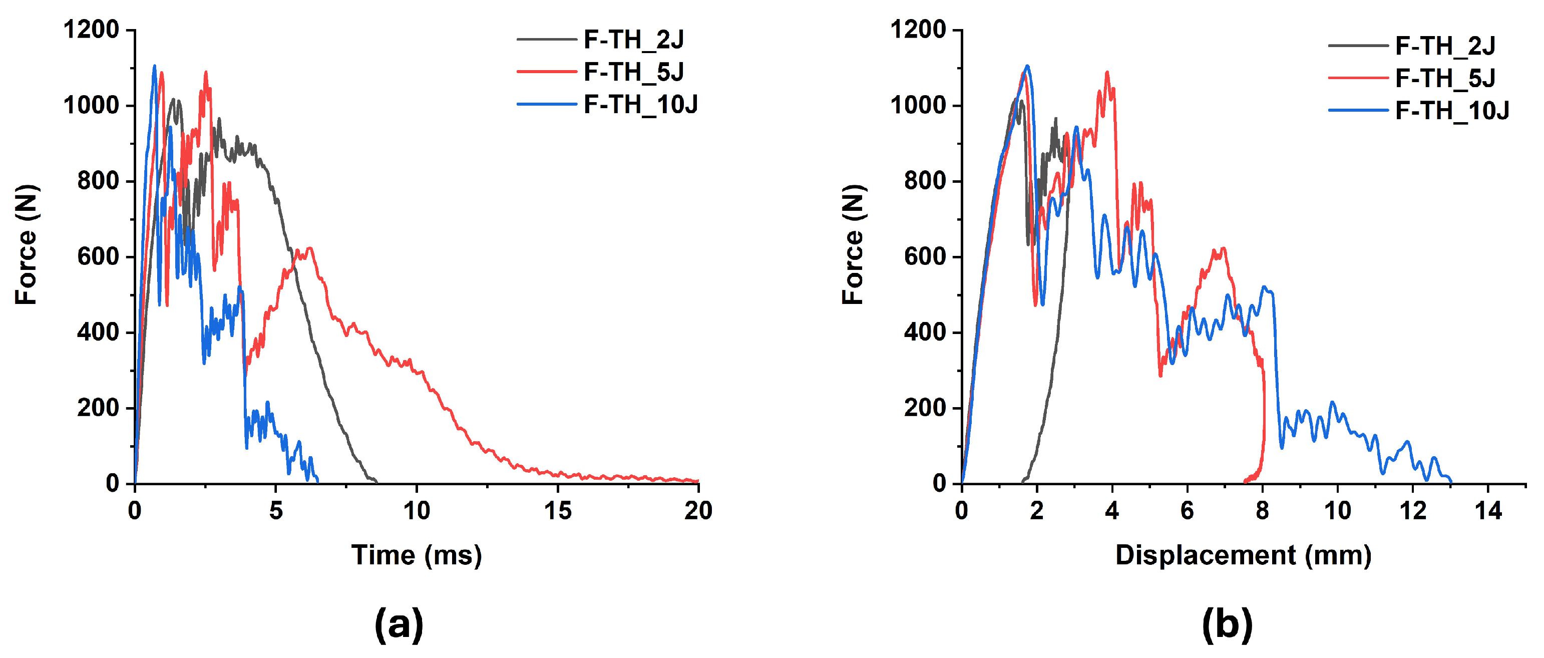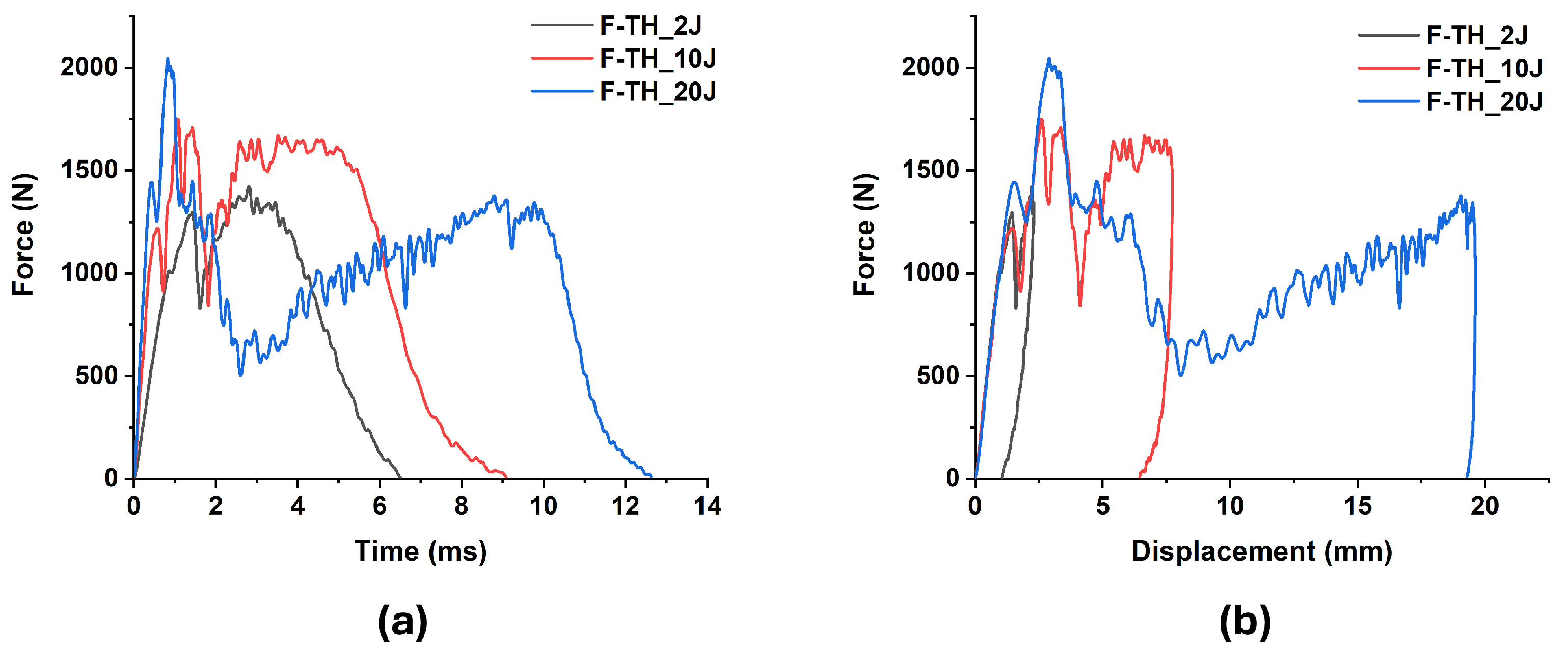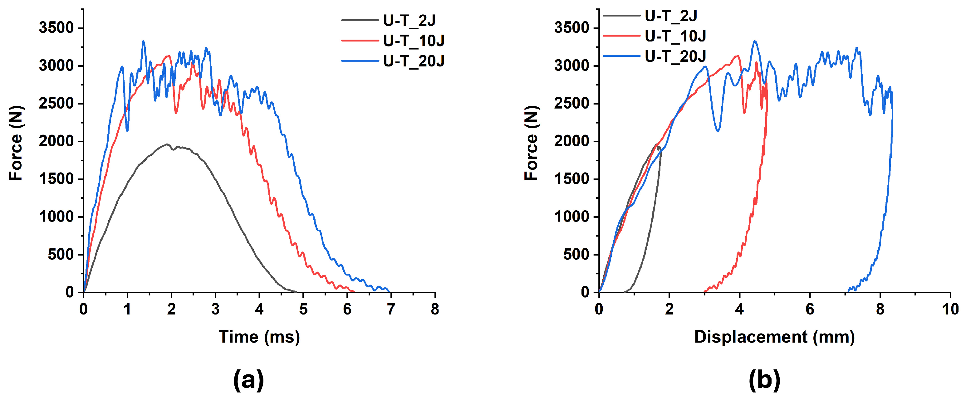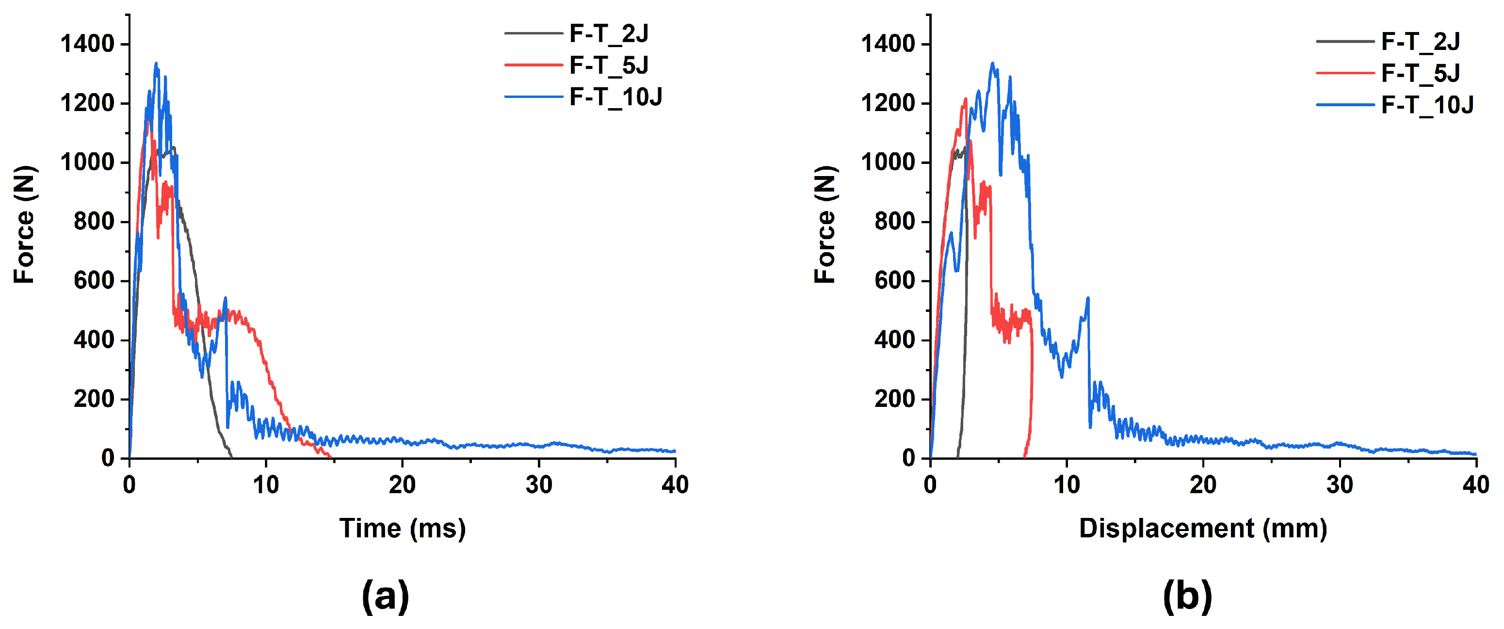 3.2.1. Experimental LVI Test Results for Sandwich Panels