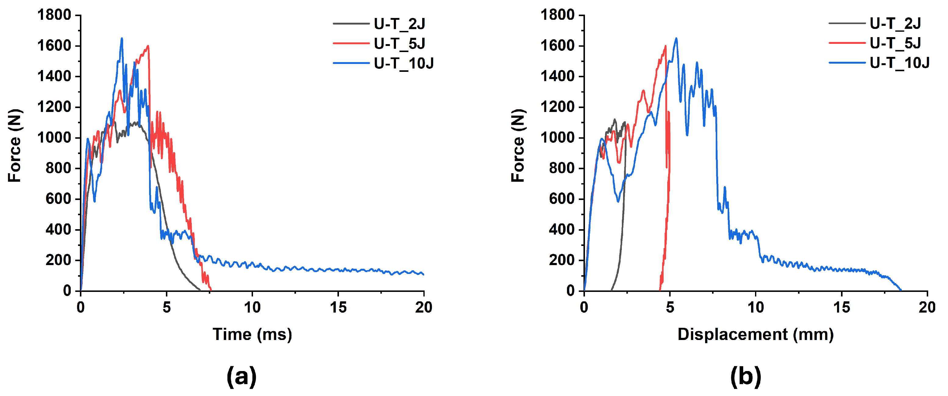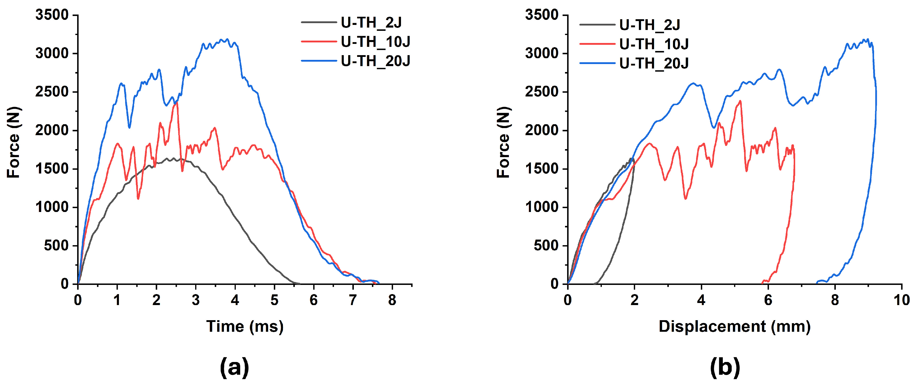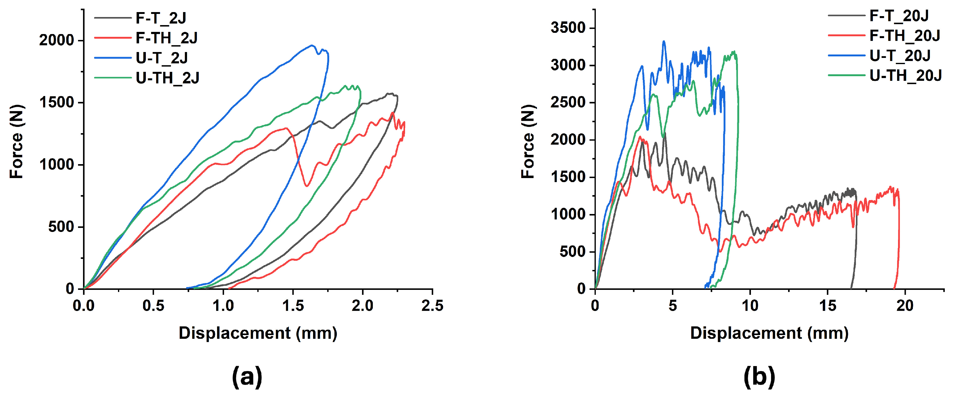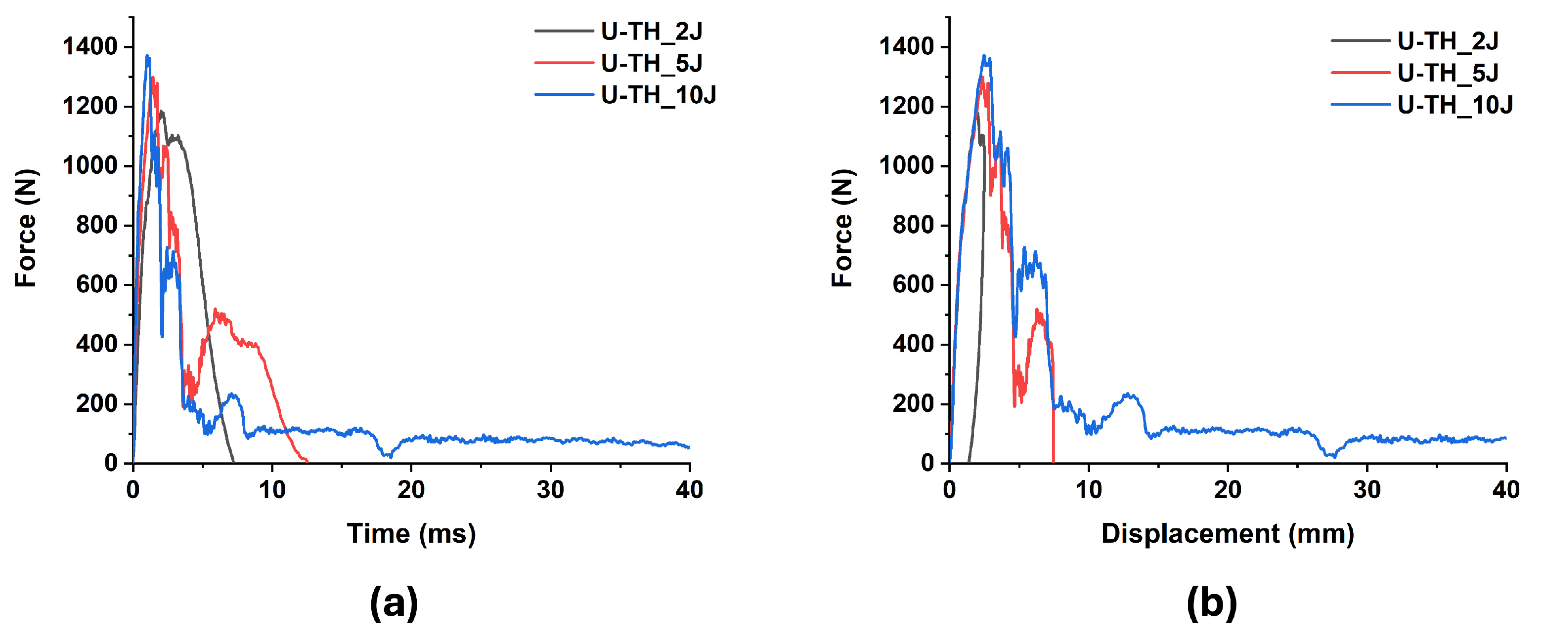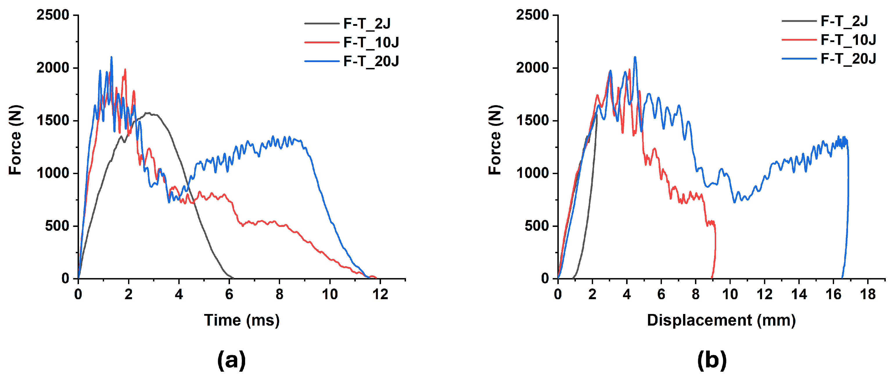 3.2.1. Experimental LVI Test Results for Sandwich Panels