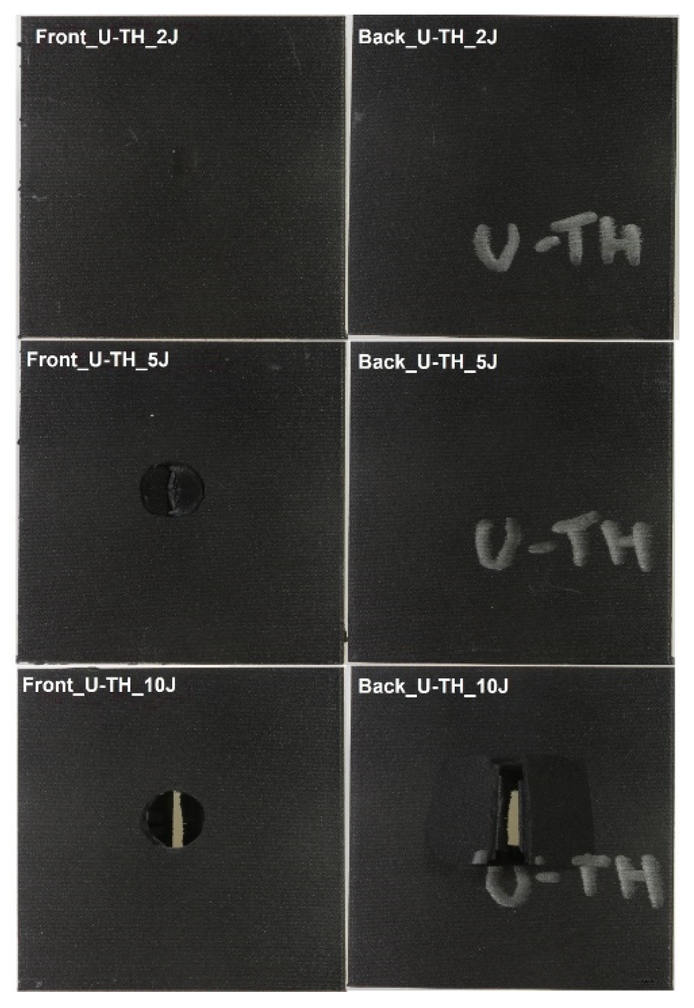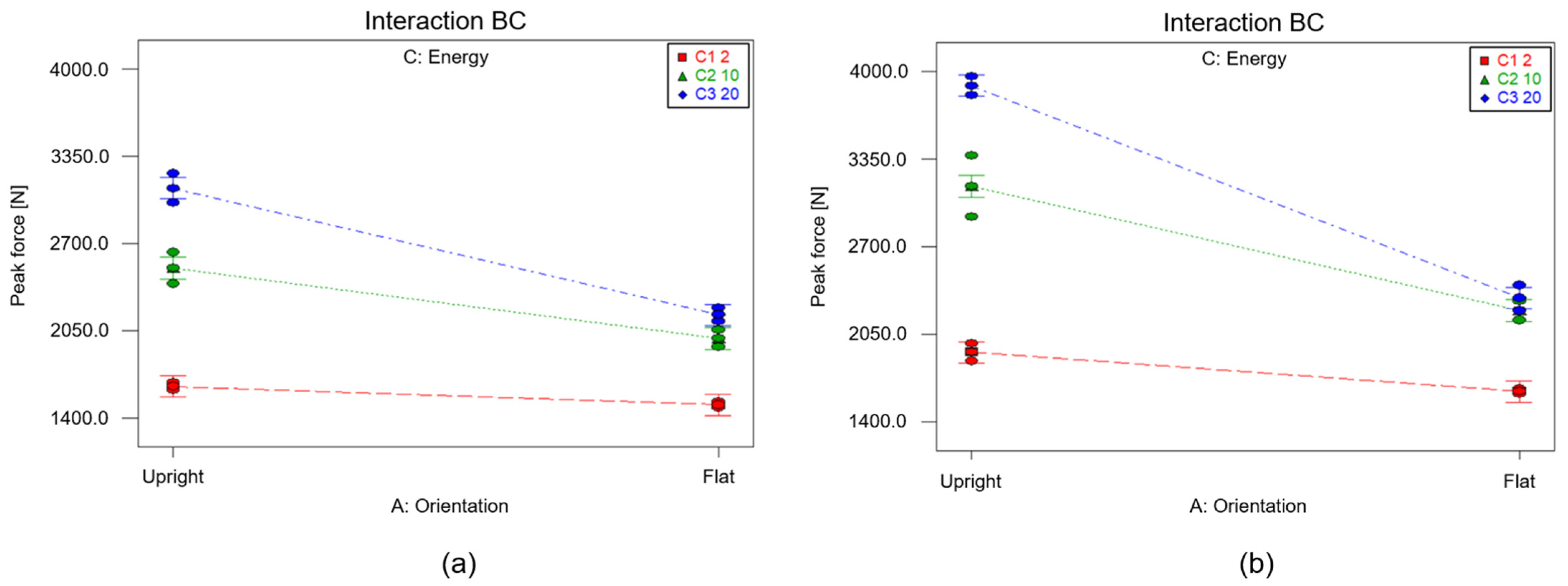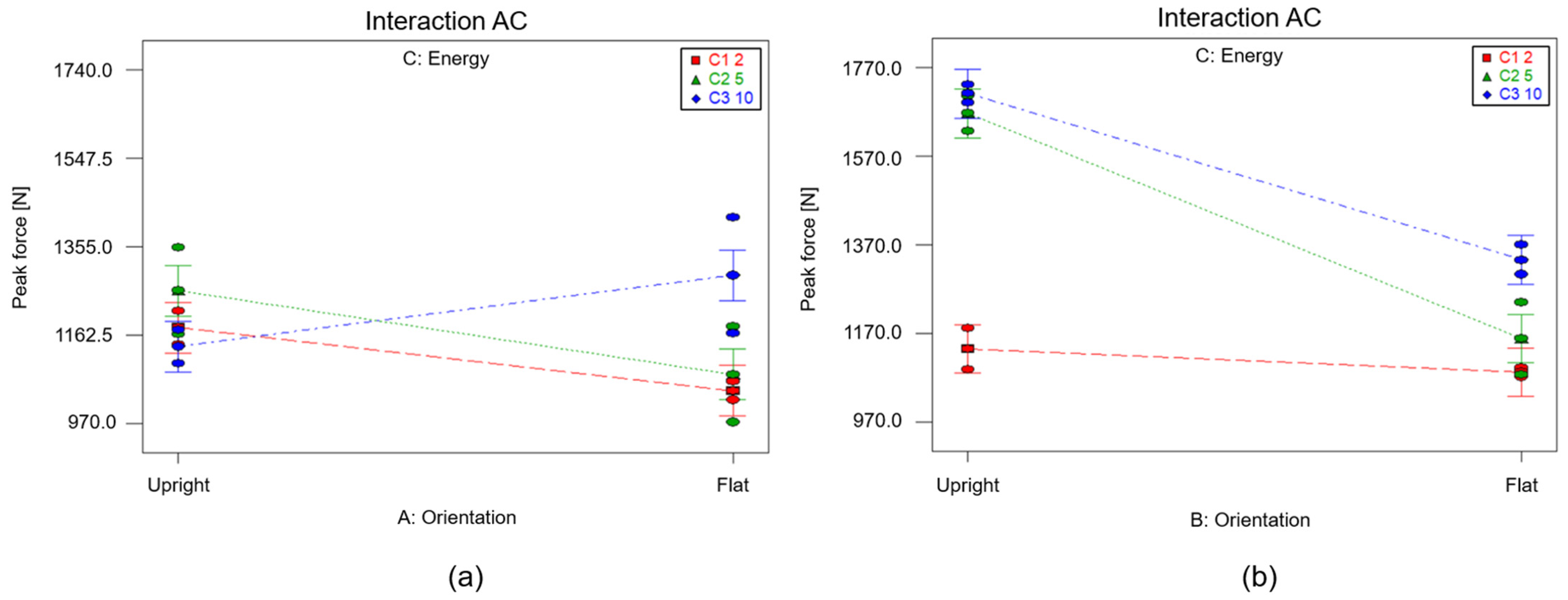 - Energy (factor C)—Numerical factor varied at three levels (c = 3) corresponding to {2, 5, 10} J.