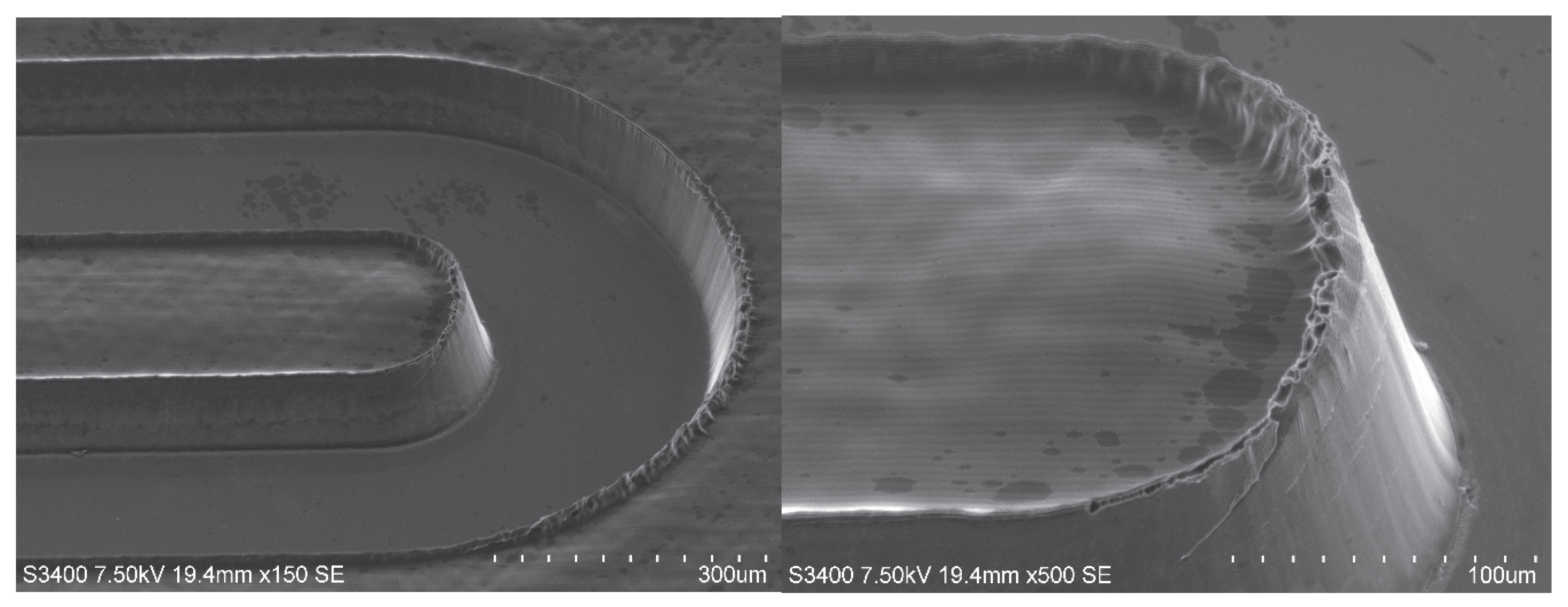 - Chang, W.L.; Luo, X.C.; Ritchie, J.M.; Sun, J.N.; Mark, C. Fabrication of microfluidic injection moulds by a hybrid micromachining process. Proc. Inst. Mech. Eng. B J. Eng. Manuf. 2011, 225, 458–462. [Google Scholar] [CrossRef]