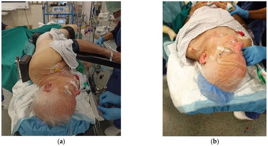 (a) Patient decubitus in “orthopedic position”; (b) patient’s head rotation less than 130°.