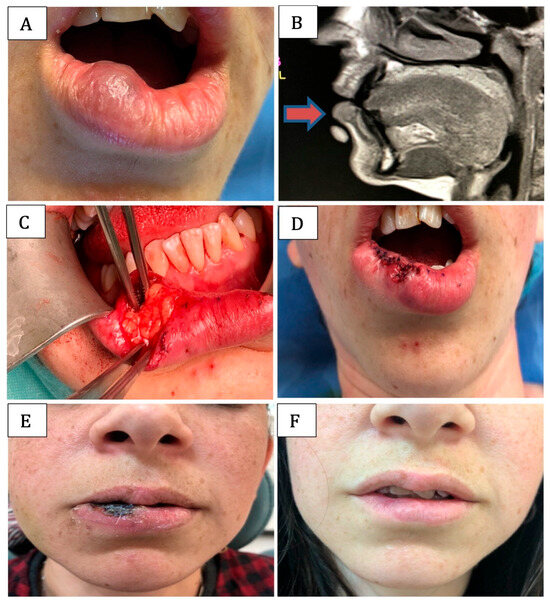Figure 4B). The surgery resulted in significant lip asymmetry and volume reduction, leading to functional and aesthetic impairments (