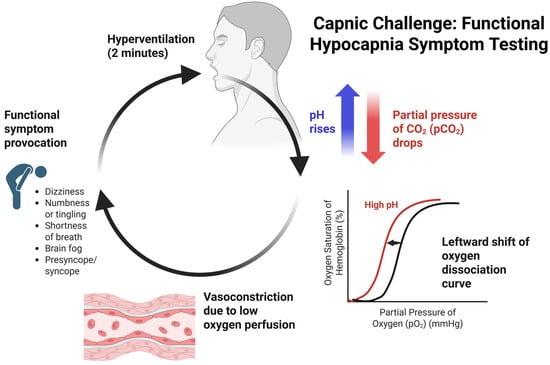Capnic Challenge Symptom Provocation flowchart focusing on physiological changes and symptoms. Created in BioRender (biorender.com, accessed on 29 December 2025). Kingsbury, S. (2025).