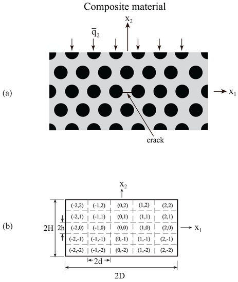 The aforementioned investigations are concerned with cracks in homogeneous materials or interfacial cracks between two homogeneous materials. When the effect of thermal loading on composite materials with cracks is sought, the application of these analyses necessitates the homogenization of the considered multiphase material. As a result of this homogenization, the effect of the composite’s periodic microstructure is lost. Furthermore, when the homogenization technique is employed in the analysis of a cracked composite with a periodic microstructure, a repeating unit cell that represents the entire composite is considered. The introduction of a crack in the repeating unit cell implies its repeated existence in the entire composite, which obviously is not a realistic situation.