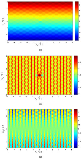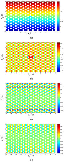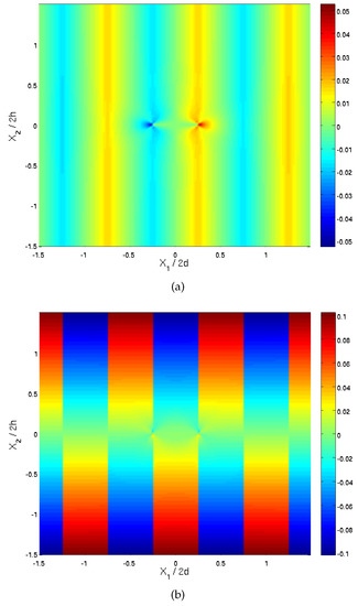 where is the Kronecker delta. It is obvious that this last expression can be generalized for the modeling of cracks that exist in other cells (as long as it is ensured that the size of the rectangular region is sufficiently large such that the far-field at its boundaries is not affected by the cracks’ existence).