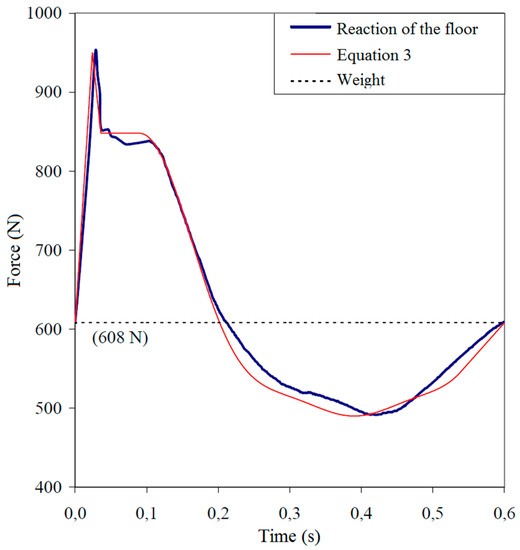 To describe loads induced by walking and jumping, mathematical models in the frequency domain as well as in the time domain can be found in the literature. In this work, only a deterministic time domain model that aims to establish a general load model for each type of human activity is considered. It is assumed that the induced force is equal in both feet. This force can be represented by a Fourier series as described by Equation (1):