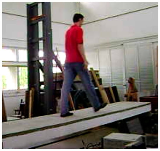 It should be noted that in small specimens, as the ones used in this work, the mass of the person on the slab may have some influence in the results; also, for the walking case, it takes some time until the structure “gets in rhythm” with the applying load.