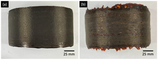 Figure 3. (a) Composite tube as manufactured. (b) Remanufactured, second-generation tube.