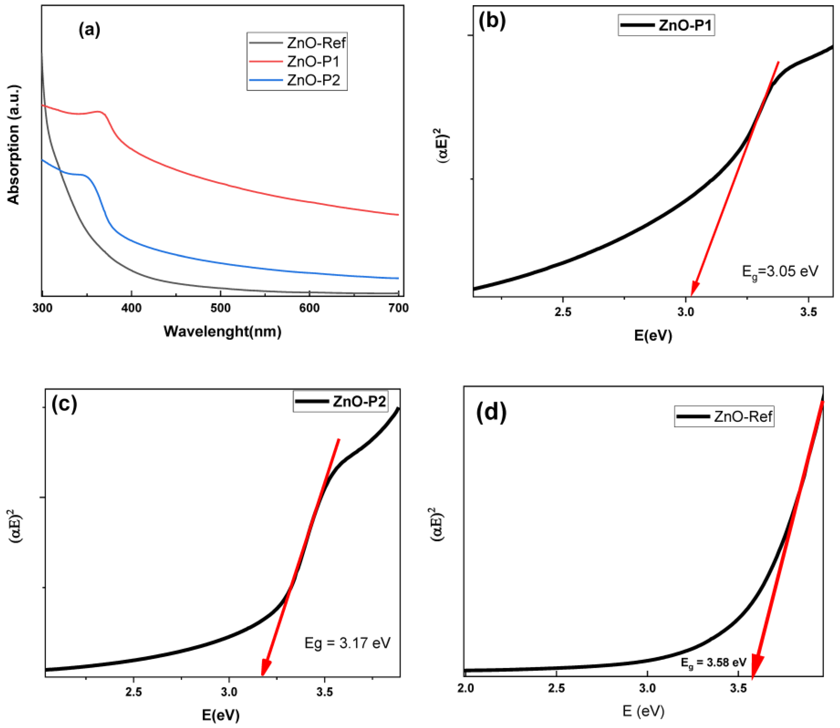 | ZnO-P2 | Peak 1 = 366 | 50.43 |