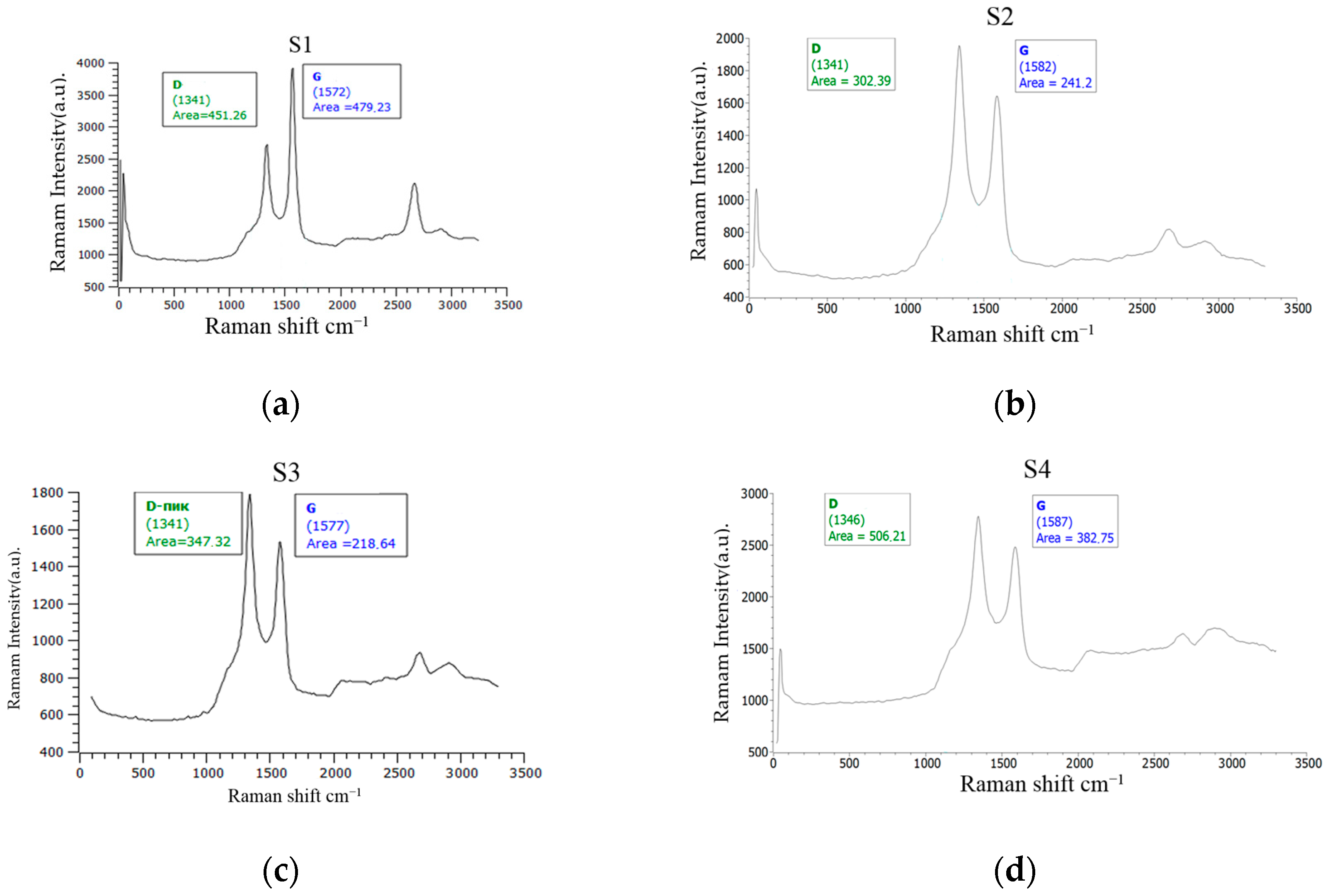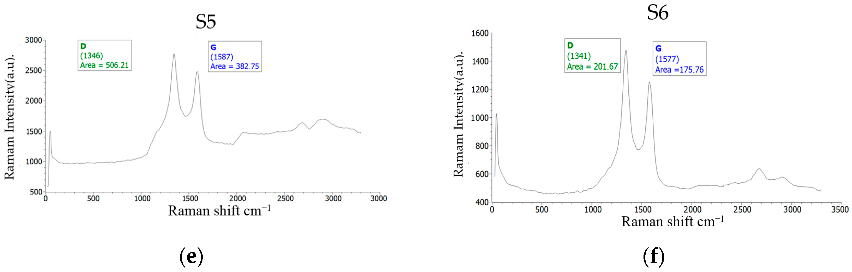 2.4. Specific Surface Area Measurement and Identification of Synthesized CNTs