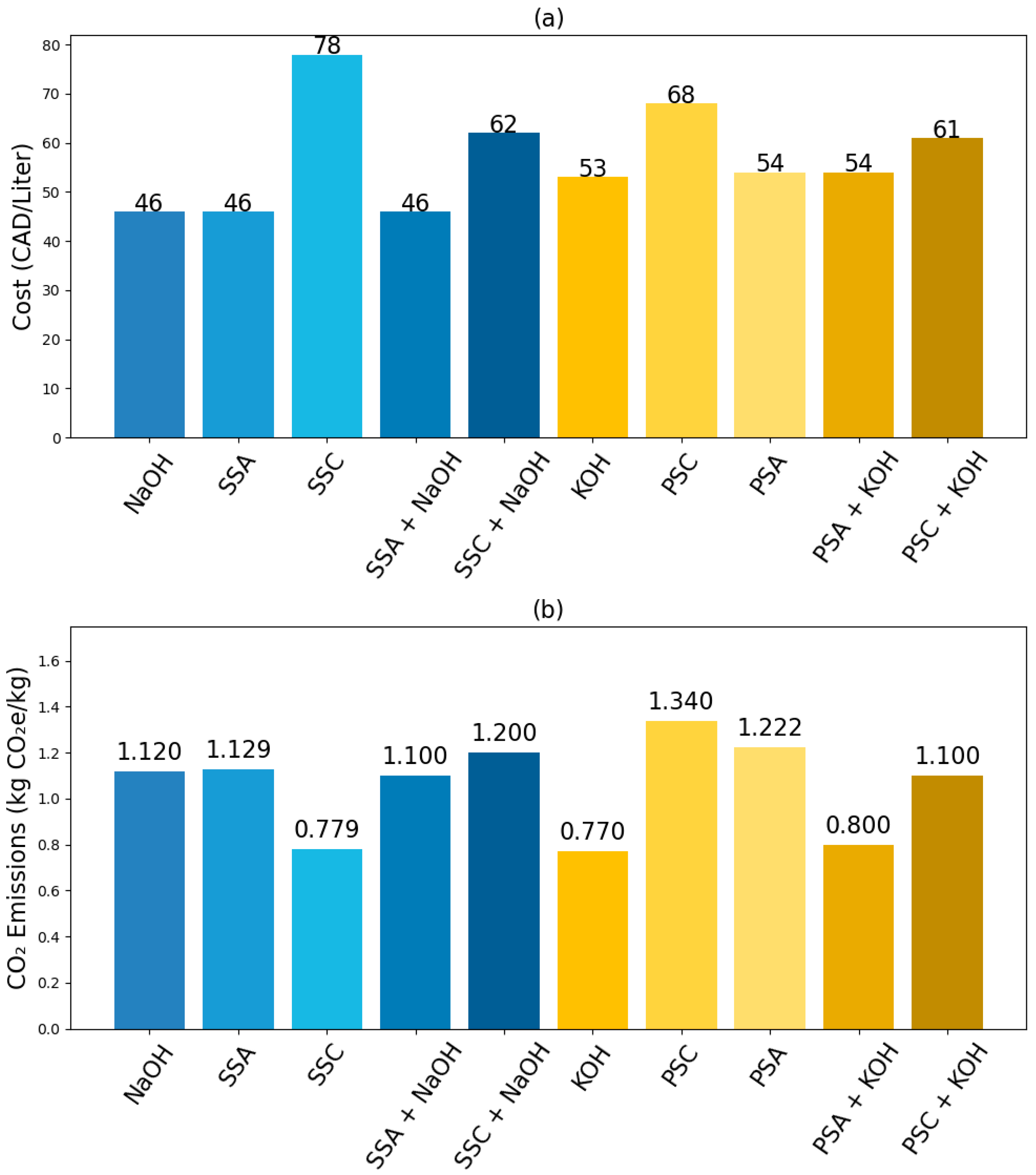 2 emissions, undermining the sustainability of sodium silicate-activated systems. Recent cost assessments of alkali-activated concretes (AACs) suggest large variability, with costs ranging from 70.67 to 114.78 CAD/m