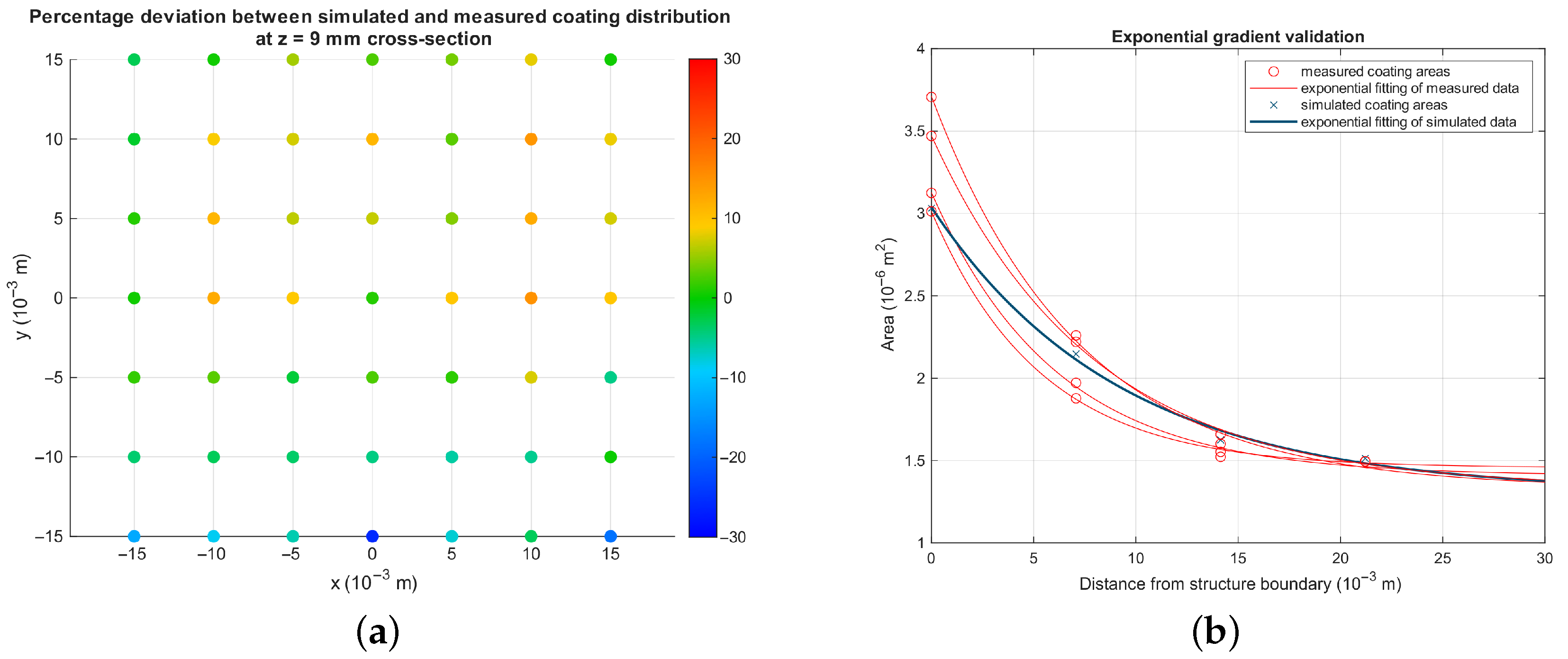 The achieved simulation accuracy demonstrates the effectiveness of the Butler–Volmer kinetic modeling approach for complex lattice geometries. The exponential coating gradient predicted by the model matches the experimental observations from both CT scanning and cross-sectional microscopy analysis. The iterative calibration procedure successfully reduced prediction errors.