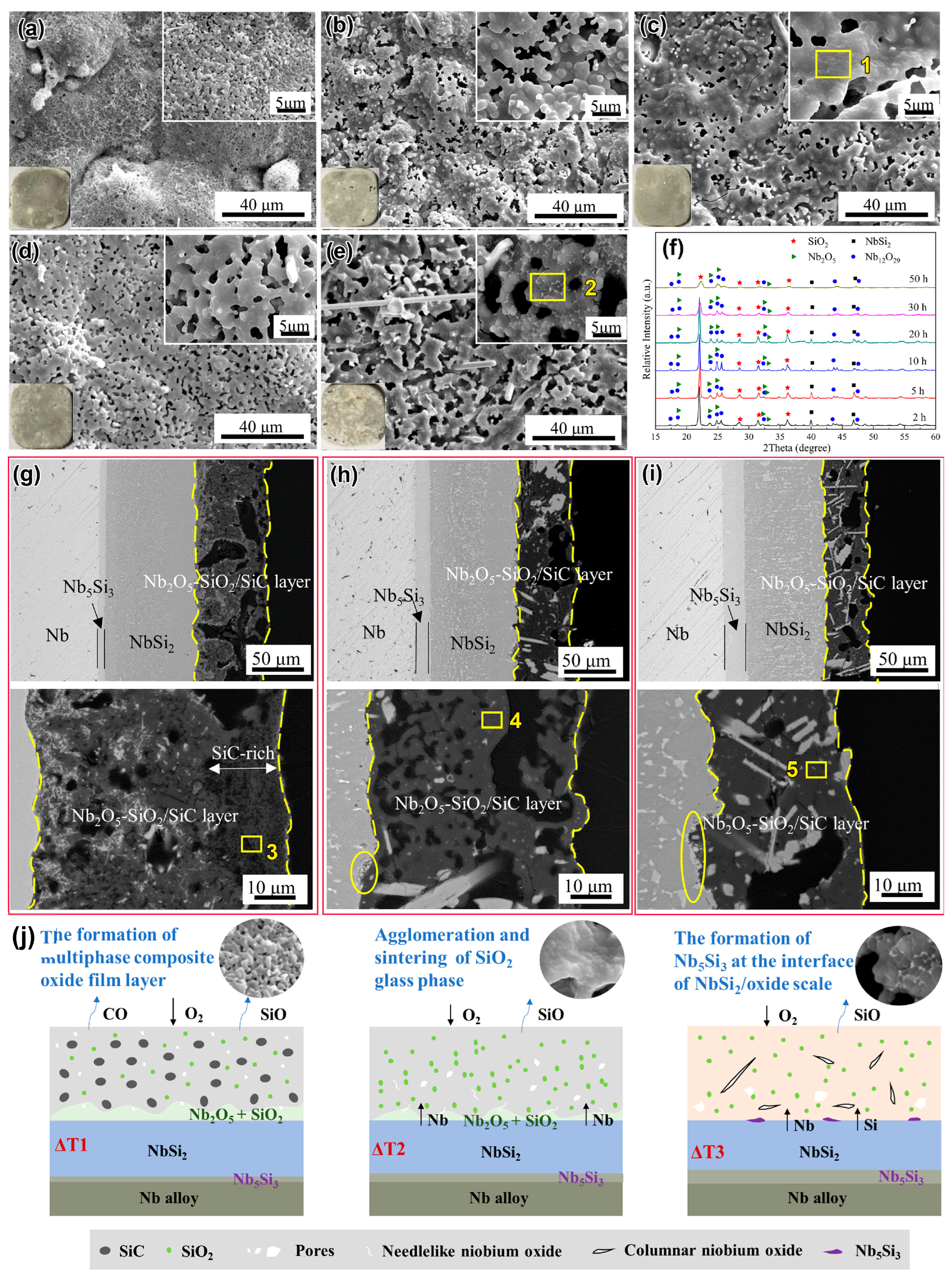 - Wang, Z.; Wang, Y.; Wang, S.; Zou, Y.; Chen, G.; Wen, L.; Ouyang, J.; Jia, D.; Zhou, Y. ZrSi2/SiO2-Nb2O5/NbSi2 multi-layer coating formed on niobium alloy by HAPC combined with LPDS: Microstructure evolution and high temperature oxidation behavior. Corros. Sci. 2022, 206, 110460. [Google Scholar] [CrossRef]