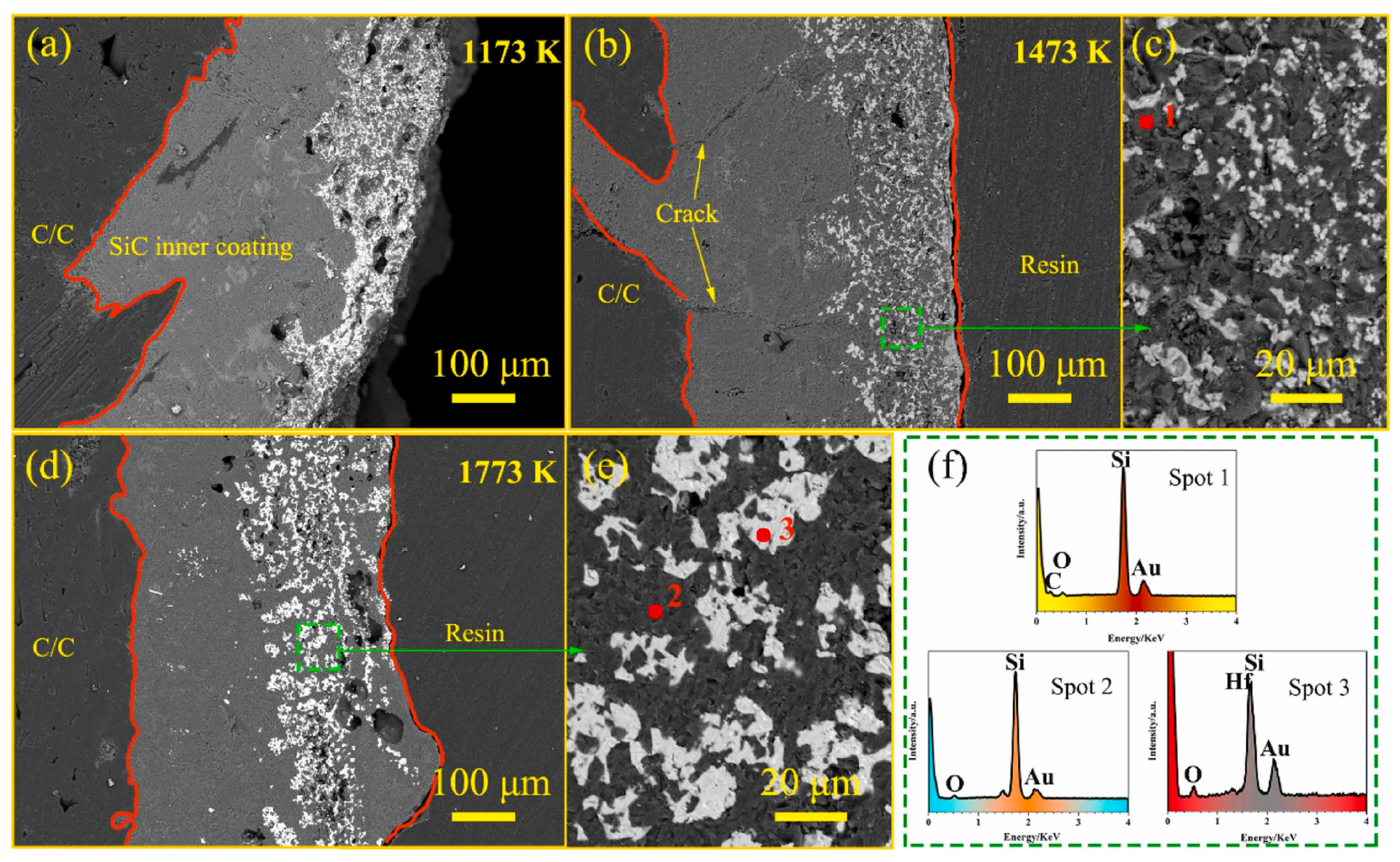 - Zeng, Y.; Wang, R.; Zhang, J.; Hou, J.; Tan, C.; Li, H. Liquid-phase-rich compensatory layer enabled self-healing in Si-SiO2/SiC-SiCw-Si bilayer anti-oxidation coating. Surf. Coat. Technol. 2026, 519, 132980. [Google Scholar] [CrossRef]