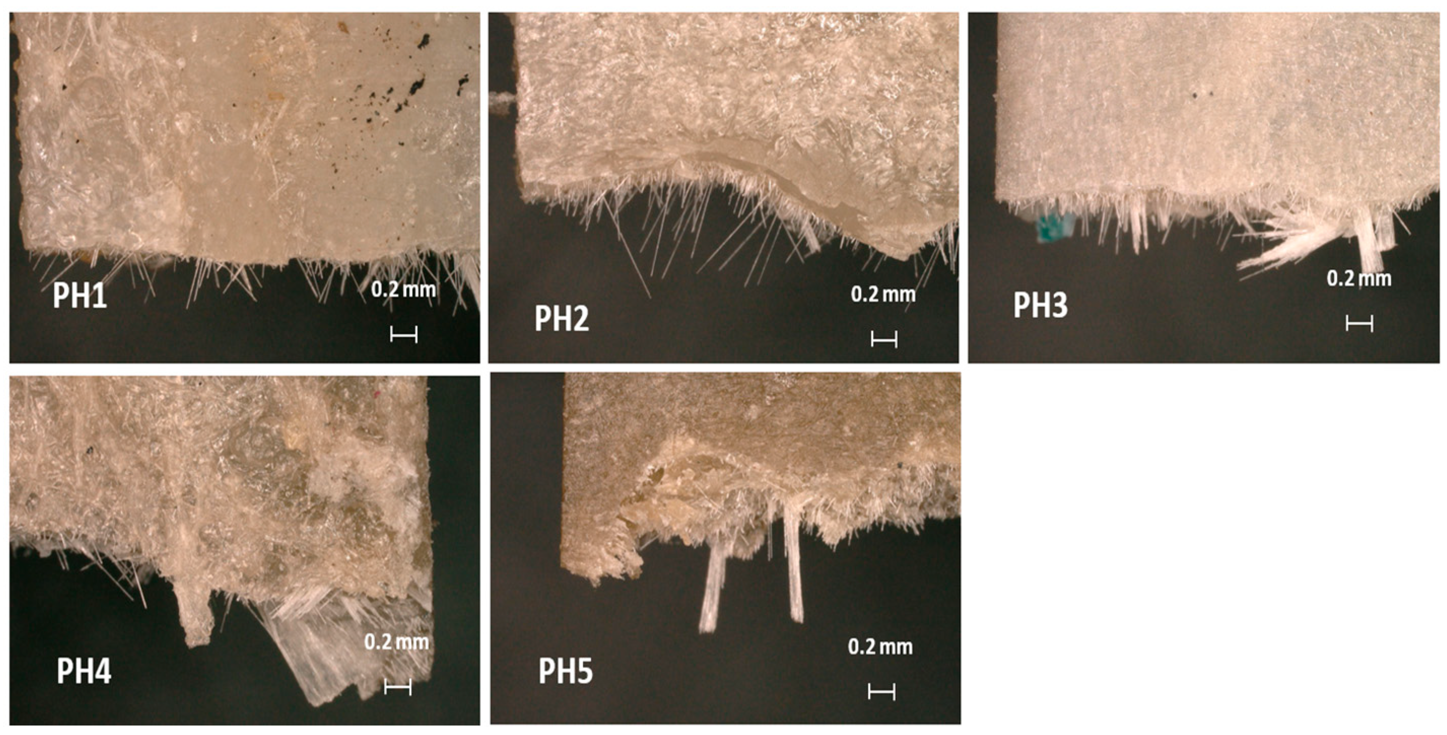 2.4.1. Optical and Scanning Electron Microscopy (SEM) Analysis of PWCs