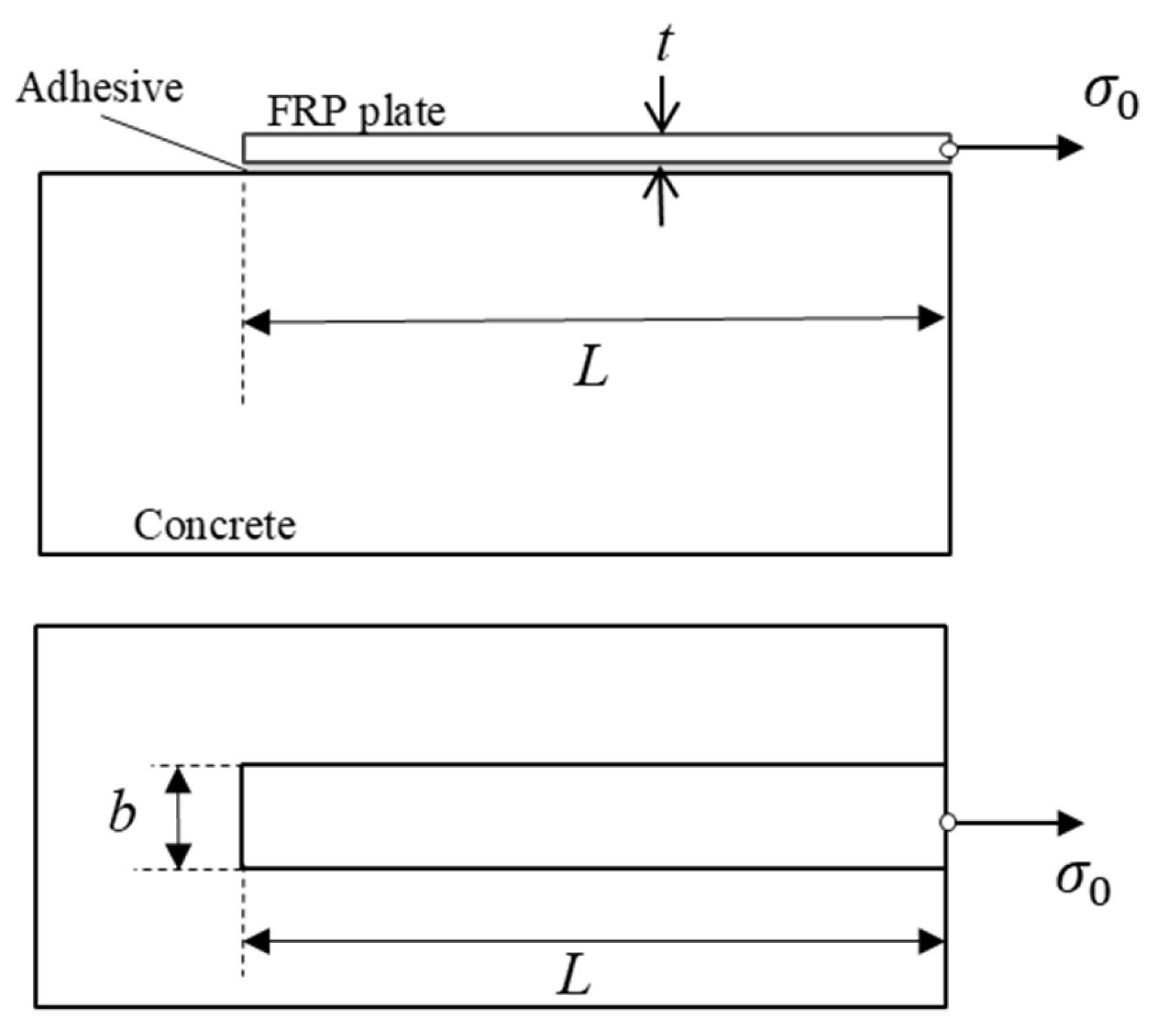 - Diab, H.M.; Farghal, O.A. Bond strength and effective bond length of FRP sheets/plates bonded to concrete considering the type of adhesive layer. Compos. Part B Eng. 2014, 58, 618–624. [Google Scholar] [CrossRef]
