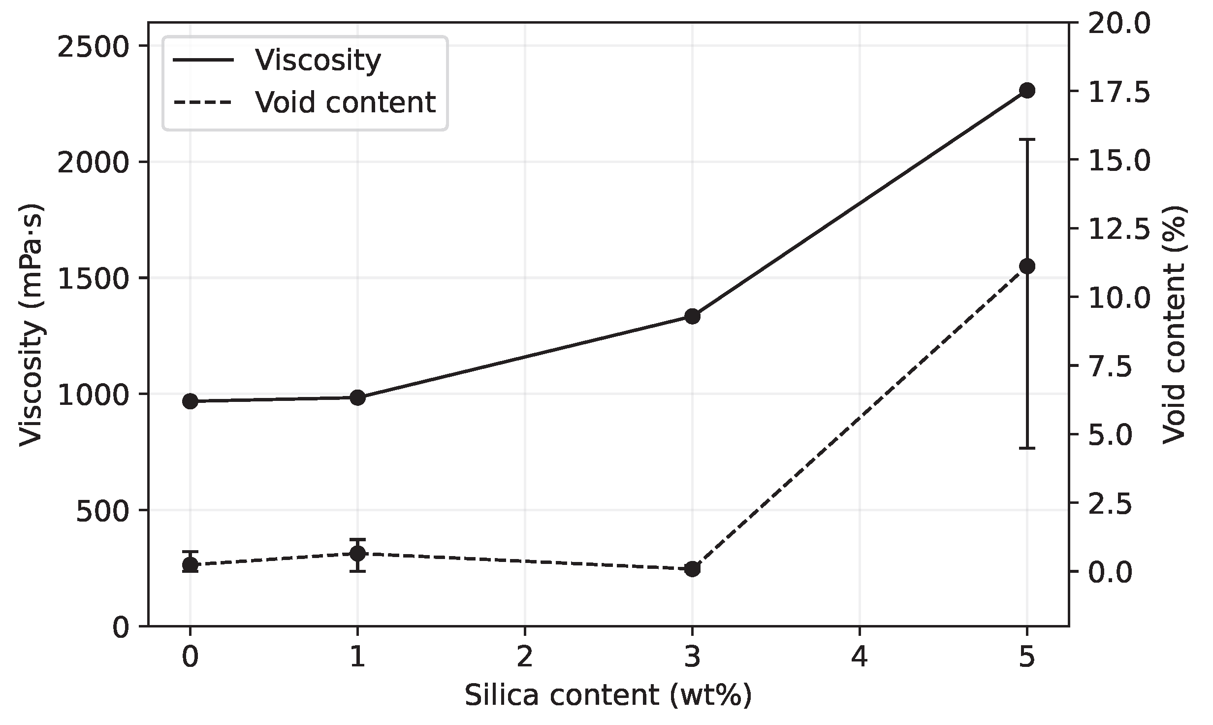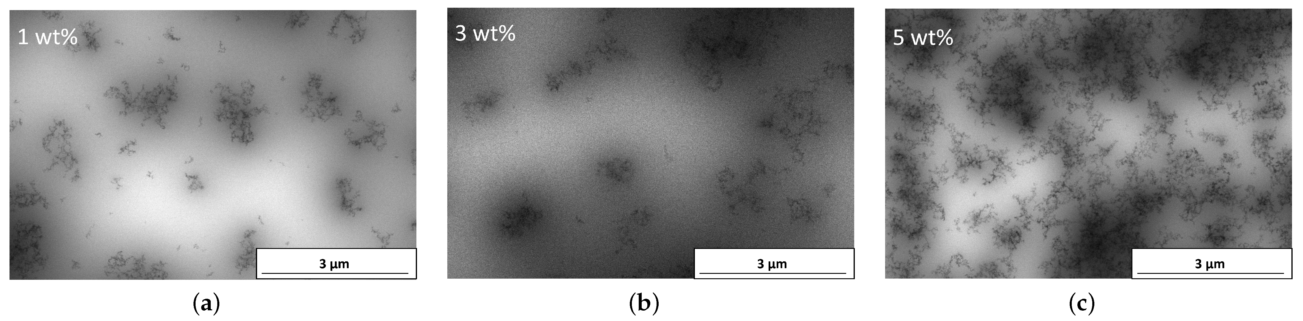 - Fumed silica formed aggregates in the epoxy, as evidenced by DLS and STEM measurements, and did not break down to primary particle size during processing. These aggregates caused a strong, non-linear increase in viscosity with rising particle content, with 5 wt% silica leading to pronounced shear-thinning behaviour.