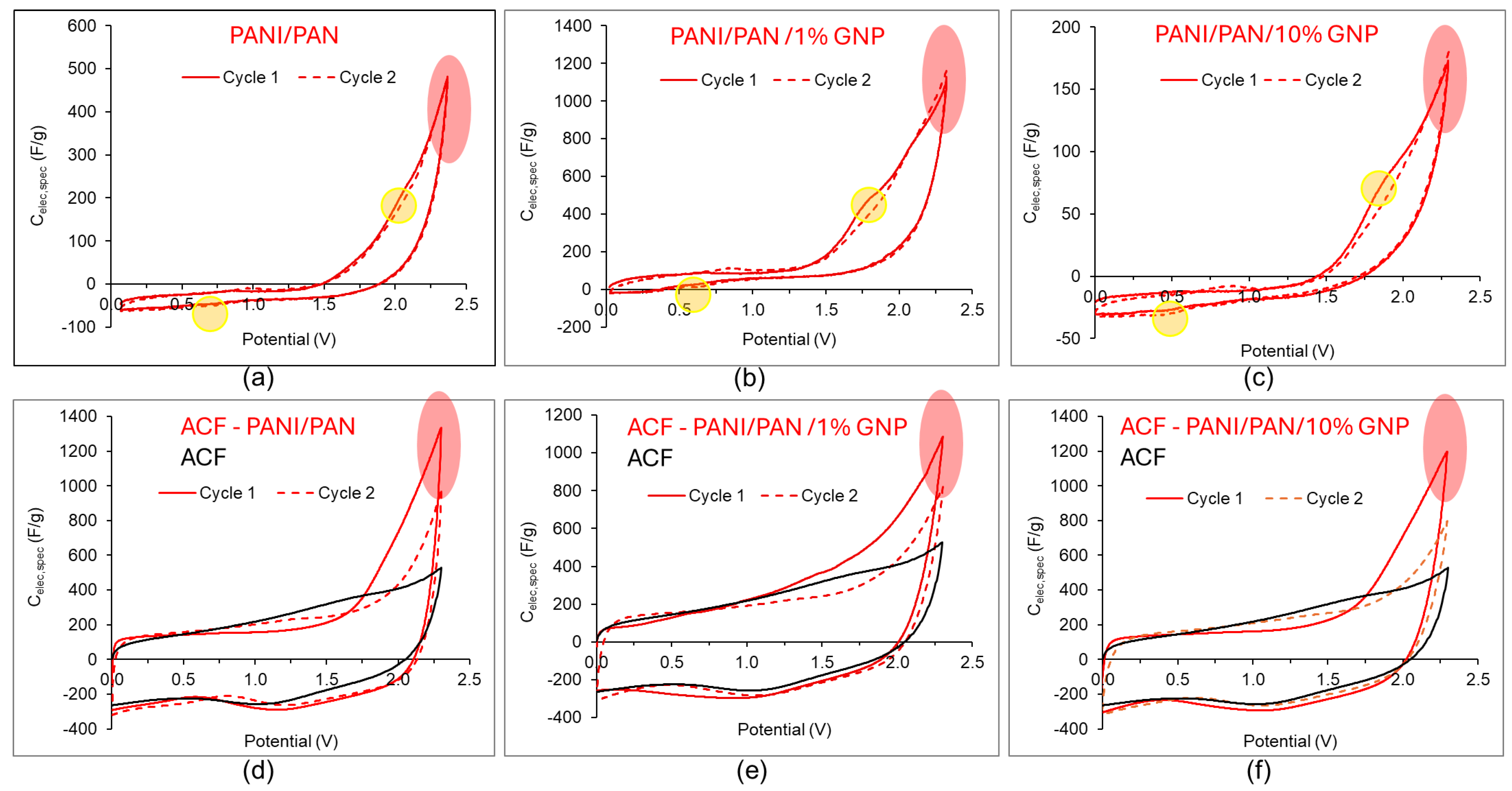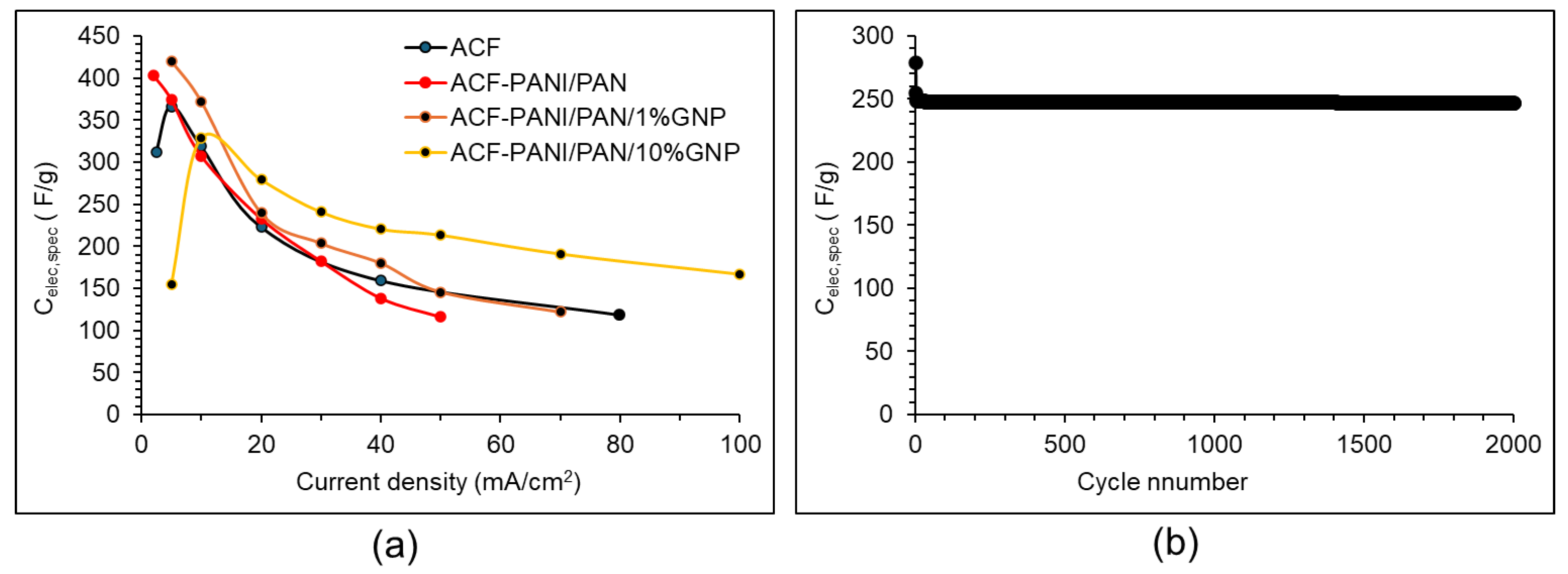 | ACF-PANI/PAN/1% GNP | 5.1 | 280 | 37.3 | 2304 |