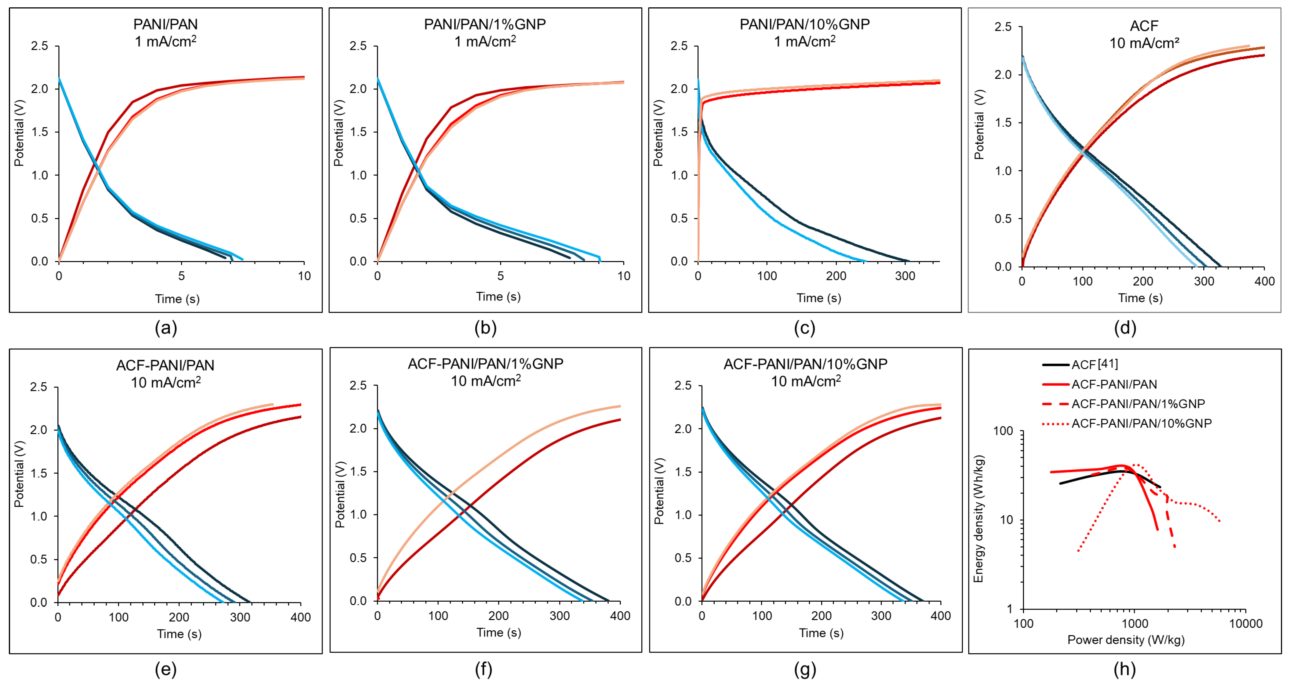 | ACF-PANI/PAN/10% GNP | 1.0 | 271 | 39.0 | 6057 |