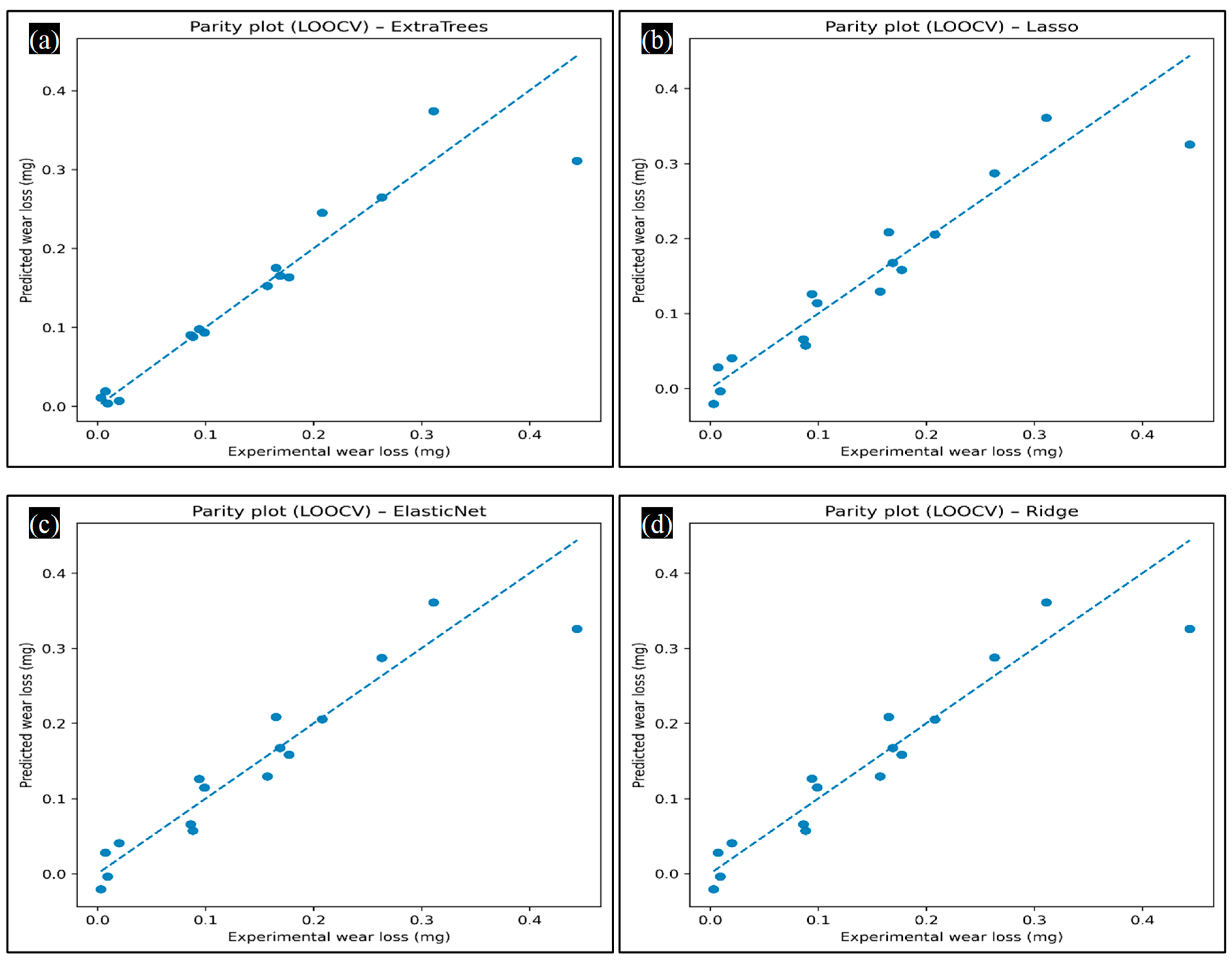4.3. Parity Analysis of Predicted and Experimental Wear Loss