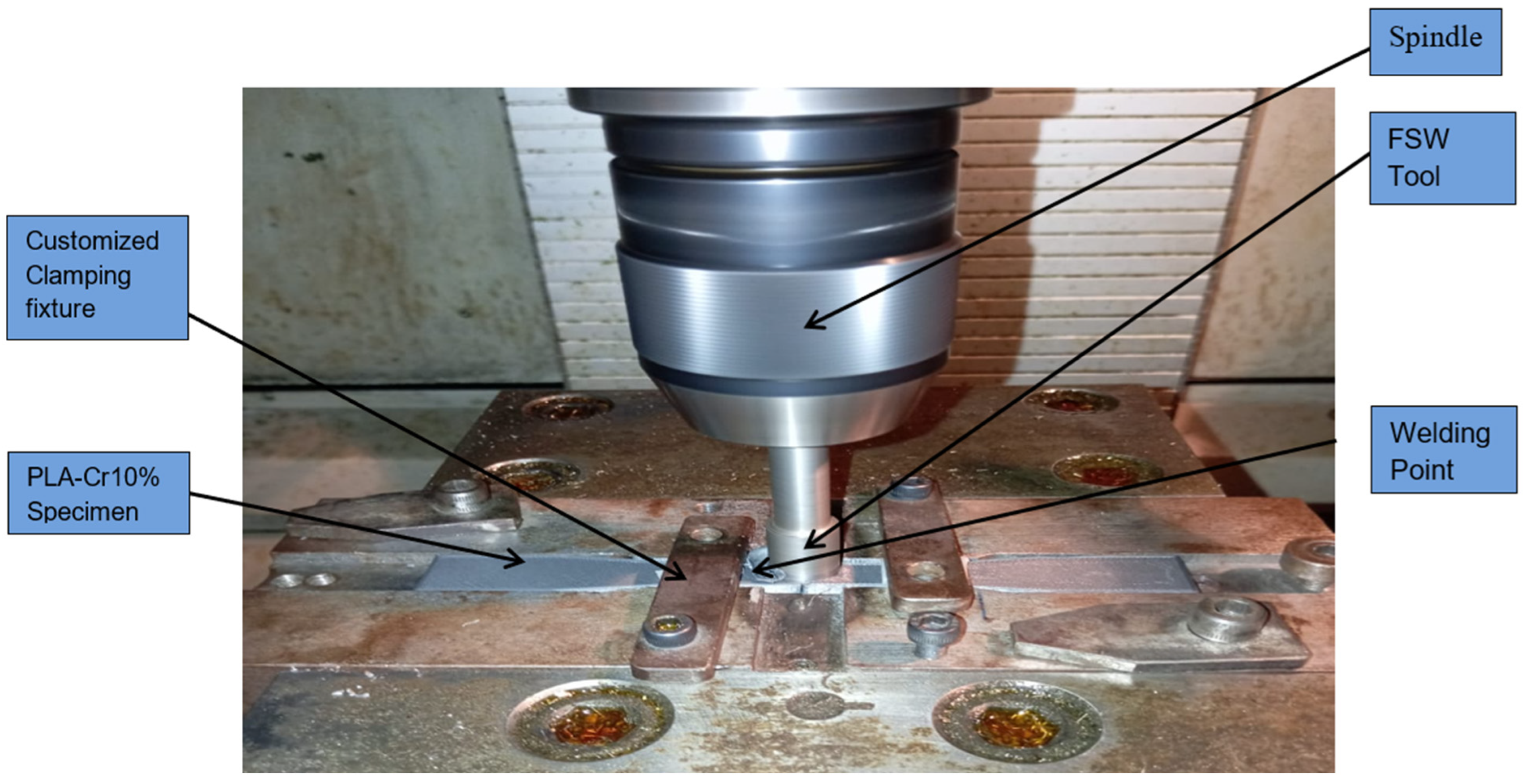 In addition, the melting point of chromium is 1860 °C, and it has better thermal conduction than that of PLA. For this reason, the average WT range obtained is exceptionally desirable, and chromium clearly helped the PLA matrix achieve this range as one outcome of FSBW.