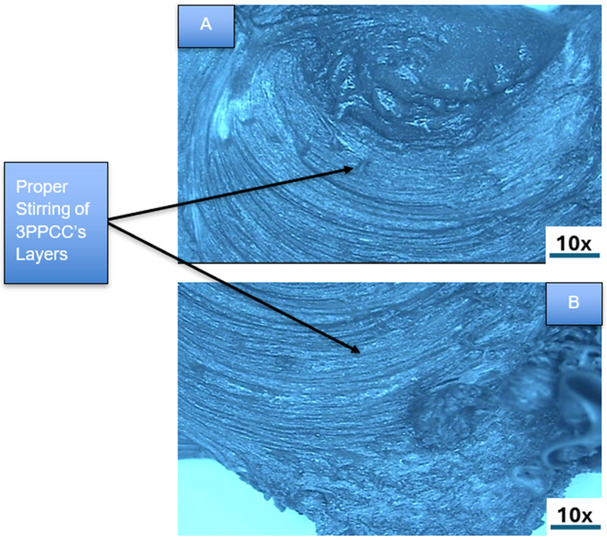 Figures S11 and S12A–C of SIF for samples 3 and 13, respectively. A rough surface was found microscopically with FSBW of 3PPCC with the square pin, due to better material shearing and a higher swept ratio, but with excellent strength retention due to minimal void formation with good and proper material fusion, as shown in all parts of