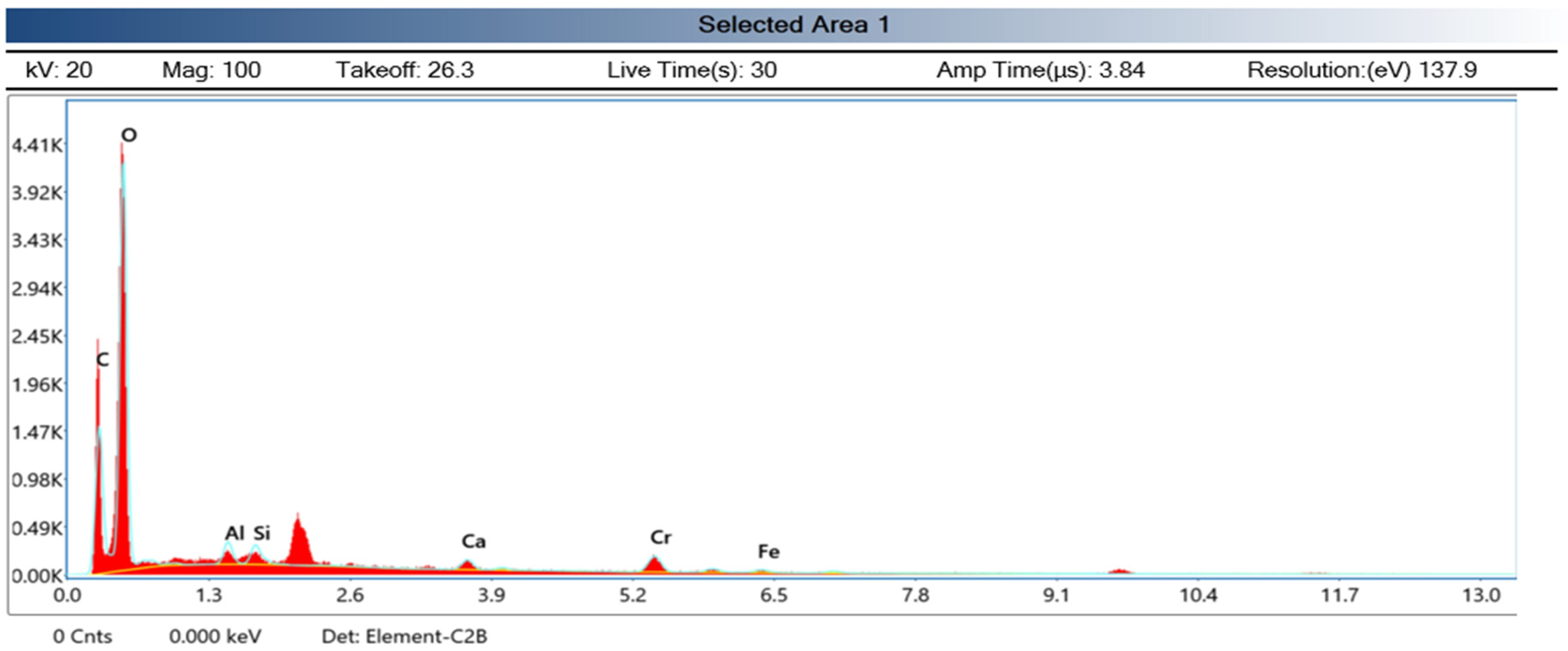 Apparently, local scarcity of Cr in the point measurement does not contradict strong mechanical performance; it likely reflects favorable bulk dispersion of Cr throughout the weld rather than localized surface exposure under investigation. In other words, effective reinforcement can exist even if not visible in a single surface point of the spectrum.