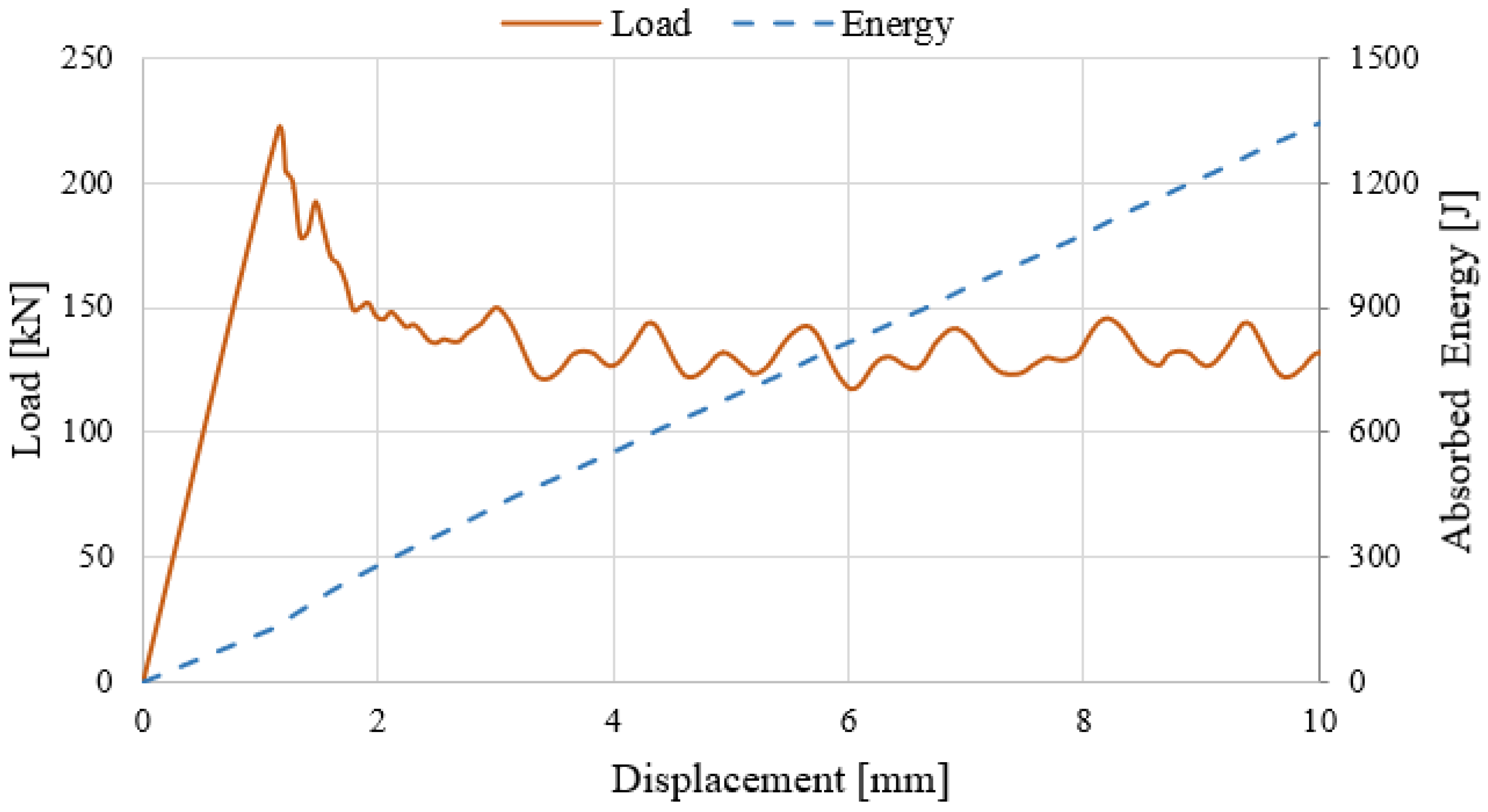 - Bayu, A.; Koronka, K.; Kadarno, P.; Purbolaksono, P. Energy Absorption Analysis of Composite Crash Box by Finite Element Method. In Proceedings of the 1st International Conference on Contemporary Risk Studies, Jakarta, Indonesia, 31 March–1 April 2022. [Google Scholar]