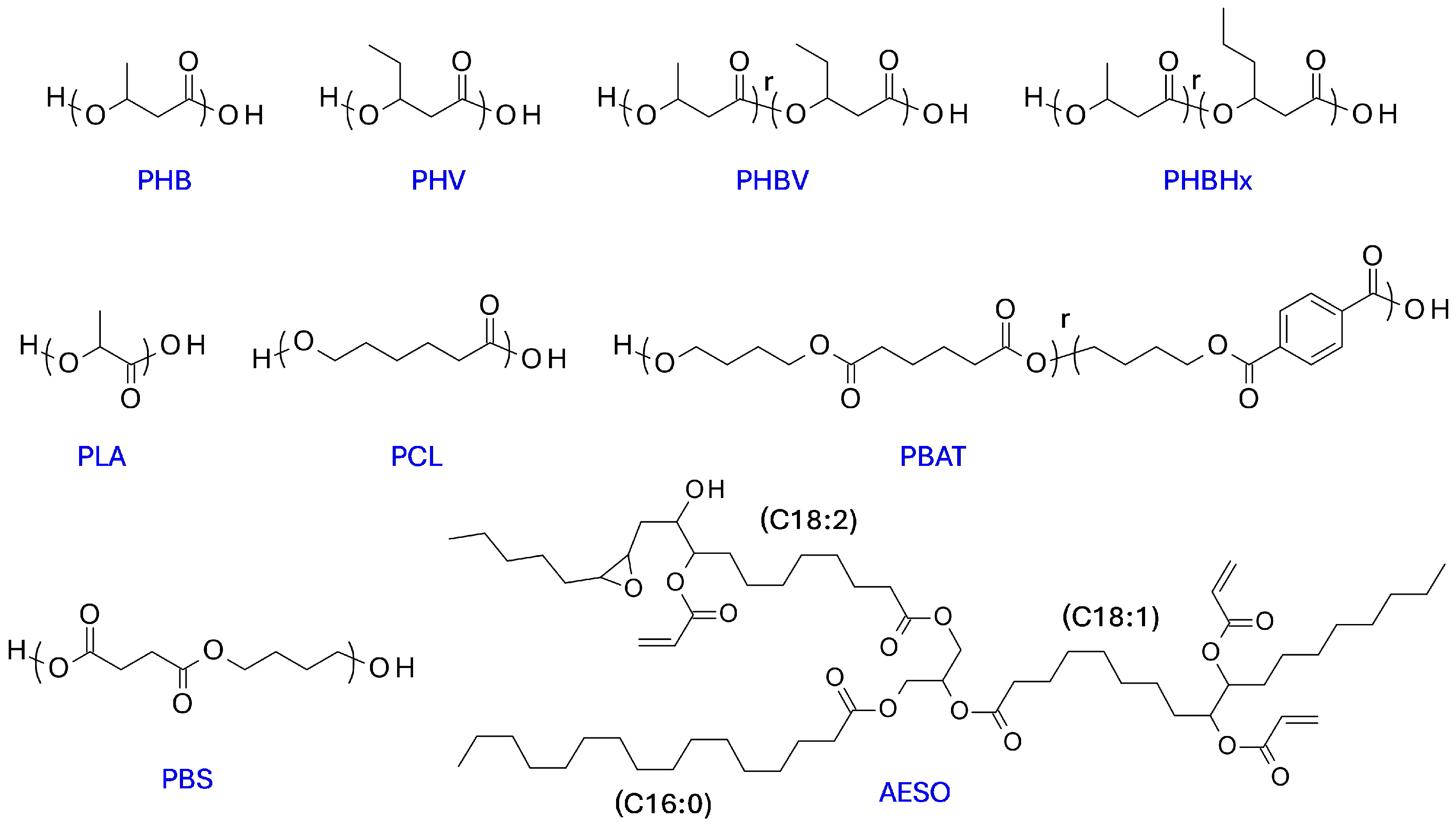 2.6.2. Polyhydroxyalkanoates (PHB, PHBV, and PHBHx)