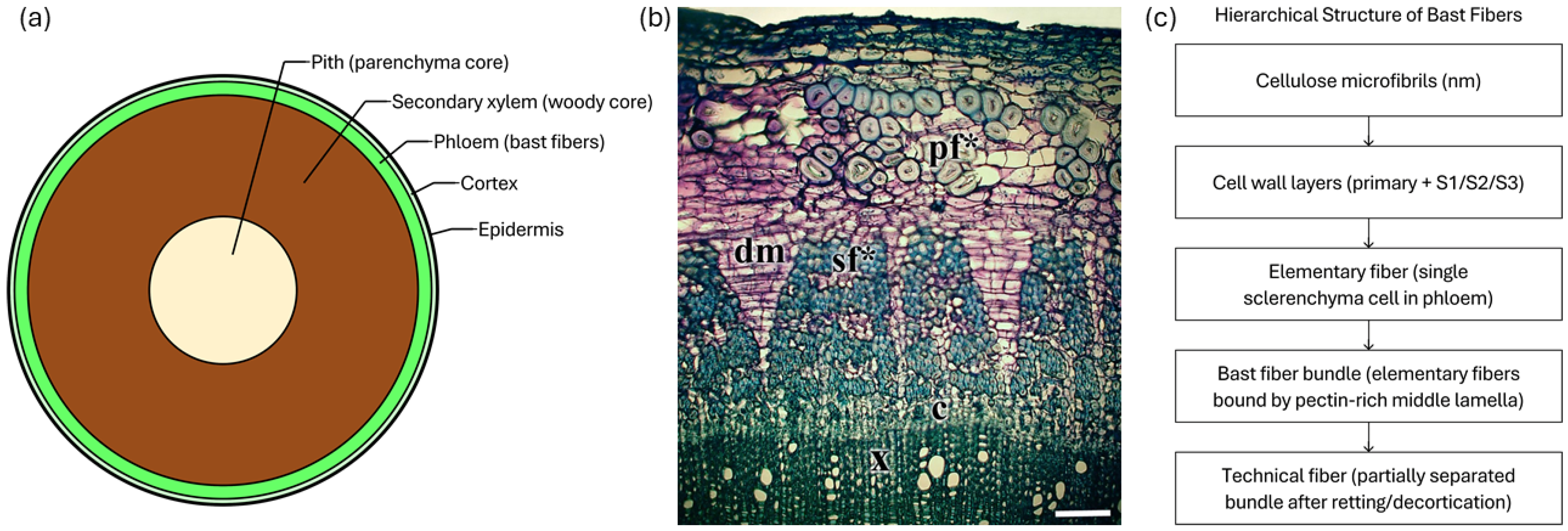 2.2.1. Hierarchical Structure of Bast Fibers in Plant Stems