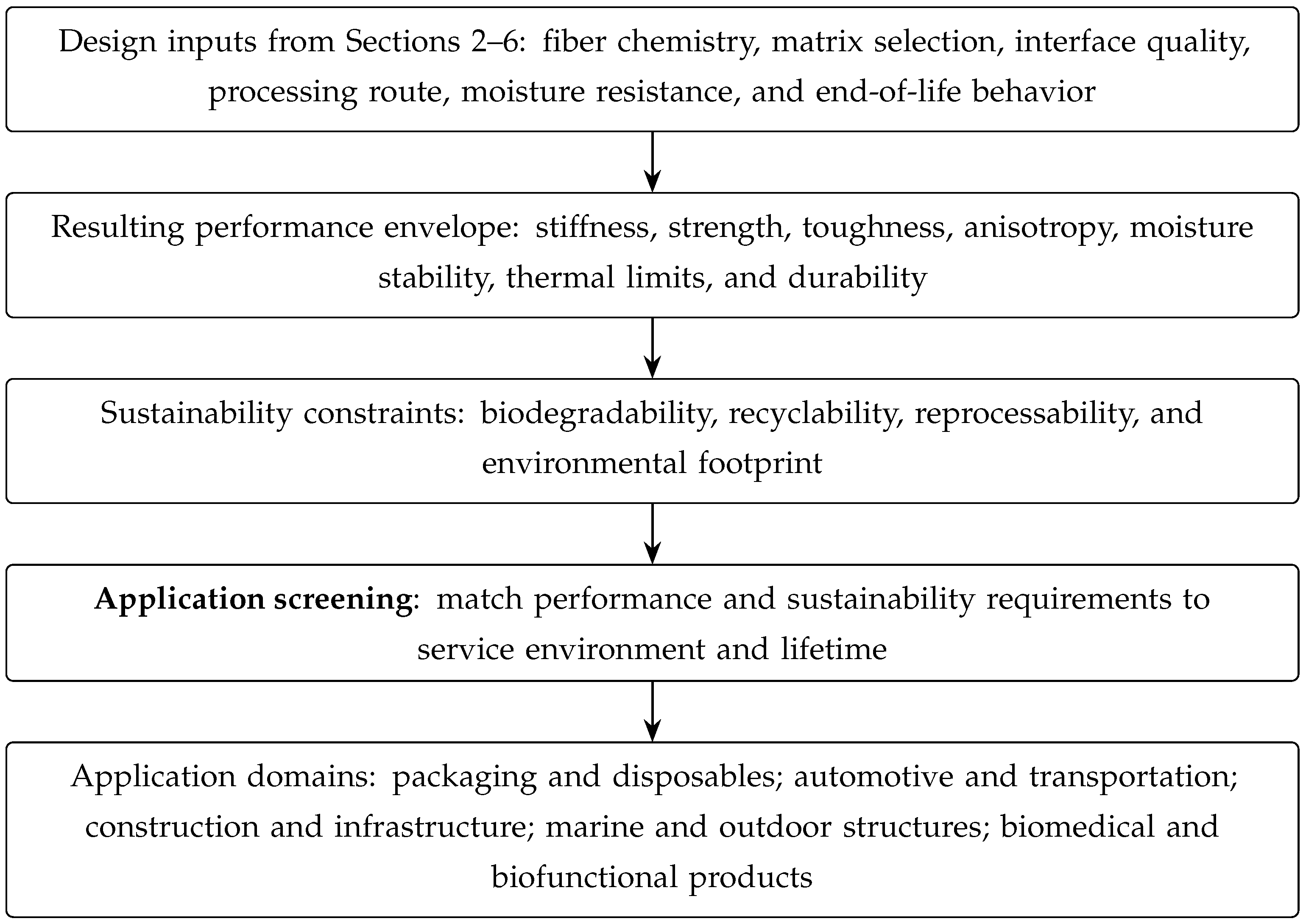 | Structural panels | Epoxy | Sisal (technical fibers) | Tensile strength 80–220 MPa; modulus 6–15 GPa; strain 1.4–2.0%; lumen impregnation reduces porosity and enhances interfacial bonding, enabling predictable stiffness scaling with fiber volume fraction. | [316] |