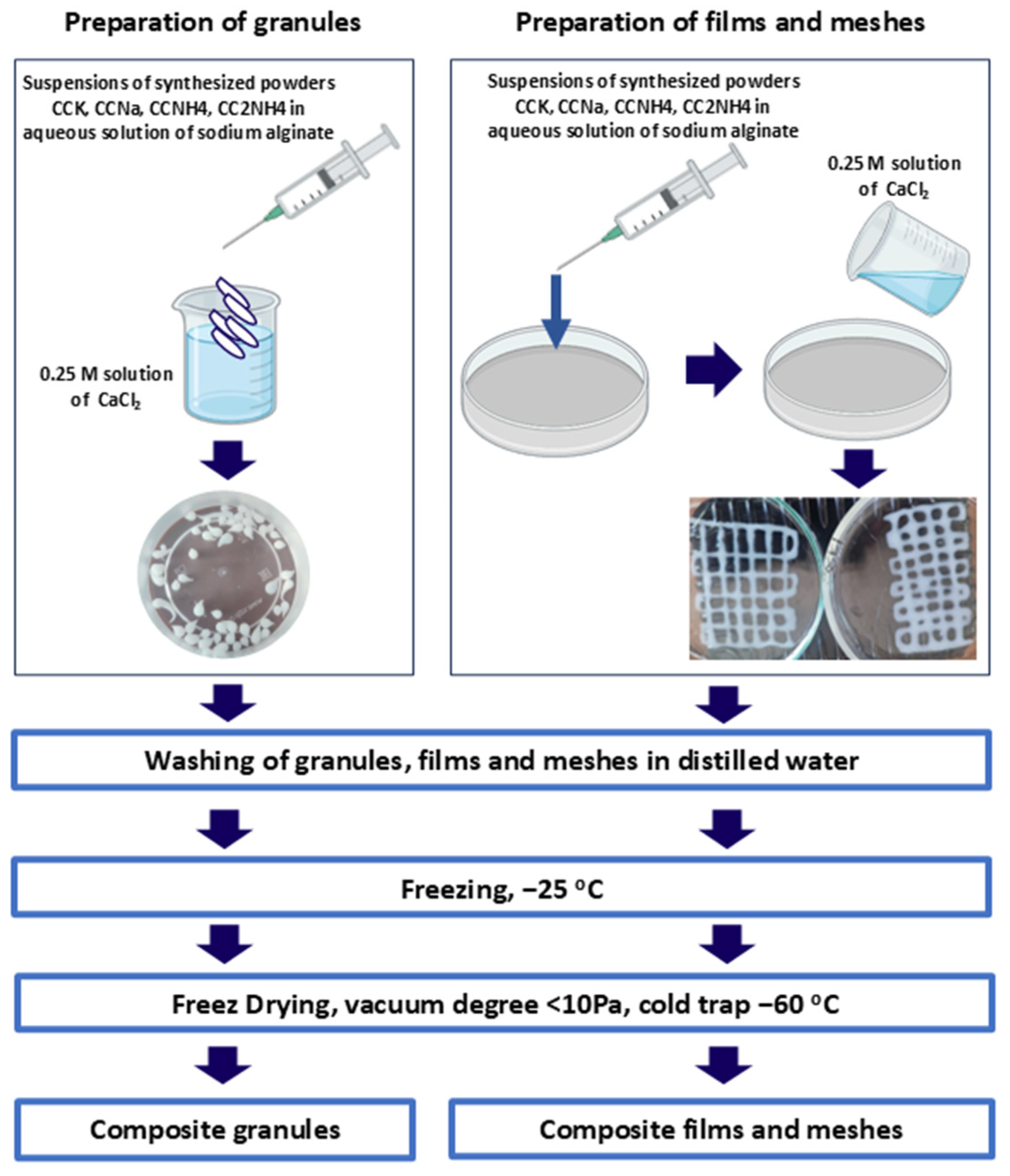 - Tsyganova, A.A.; Golovanova, O.A. Synthesis of a Composite Material Based on a Mixture of Calcium Phosphates and Sodium Alginate. Inorg. Mater. 2019, 55, 1156–1161. [Google Scholar] [CrossRef]