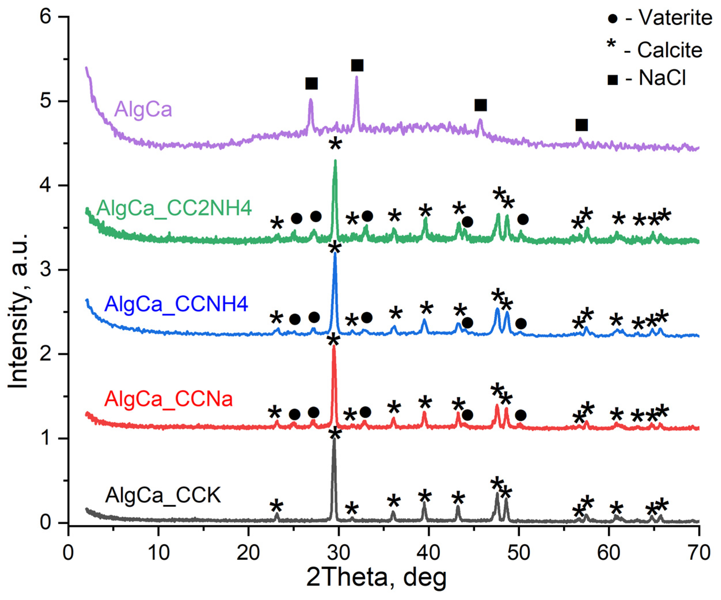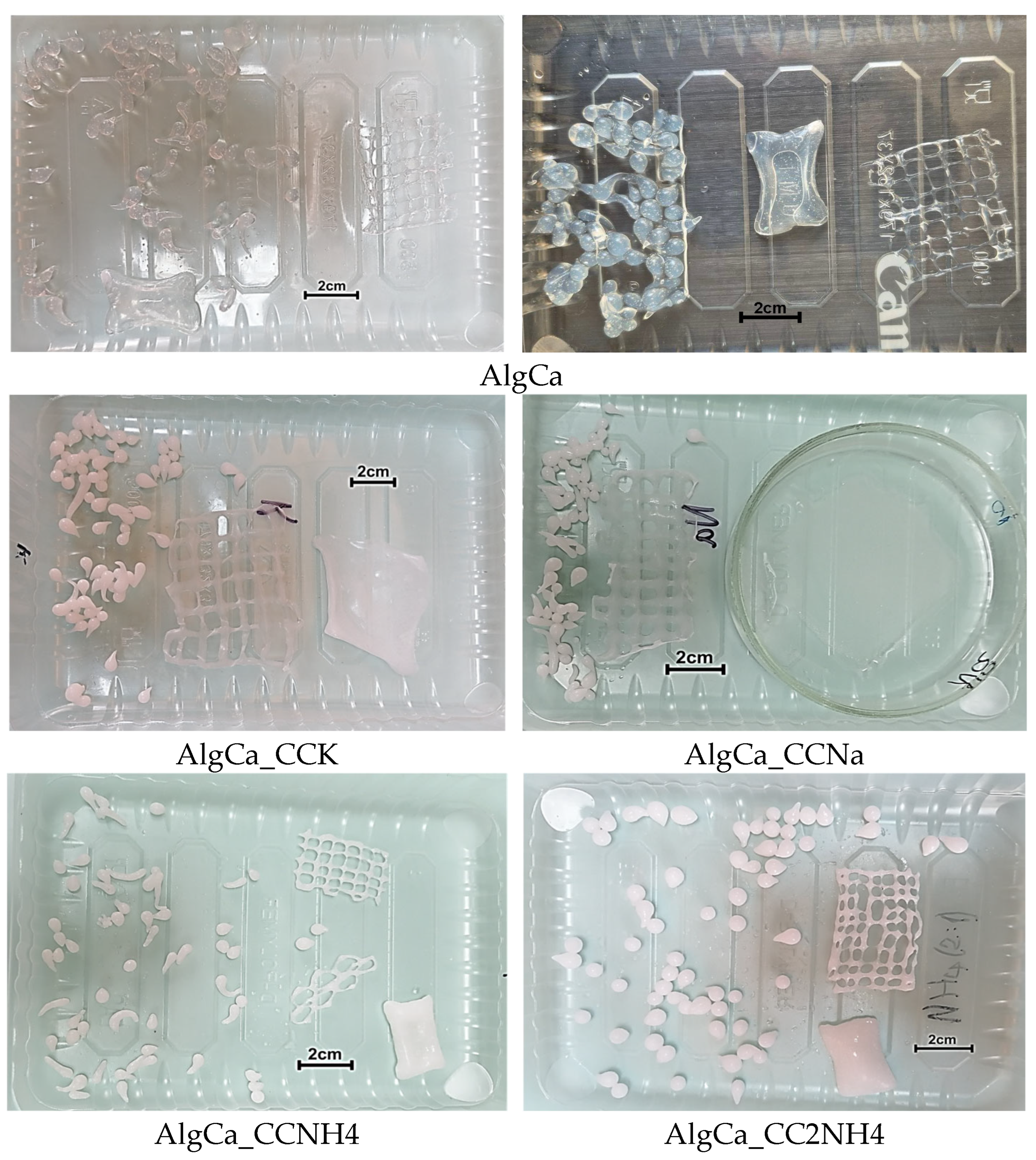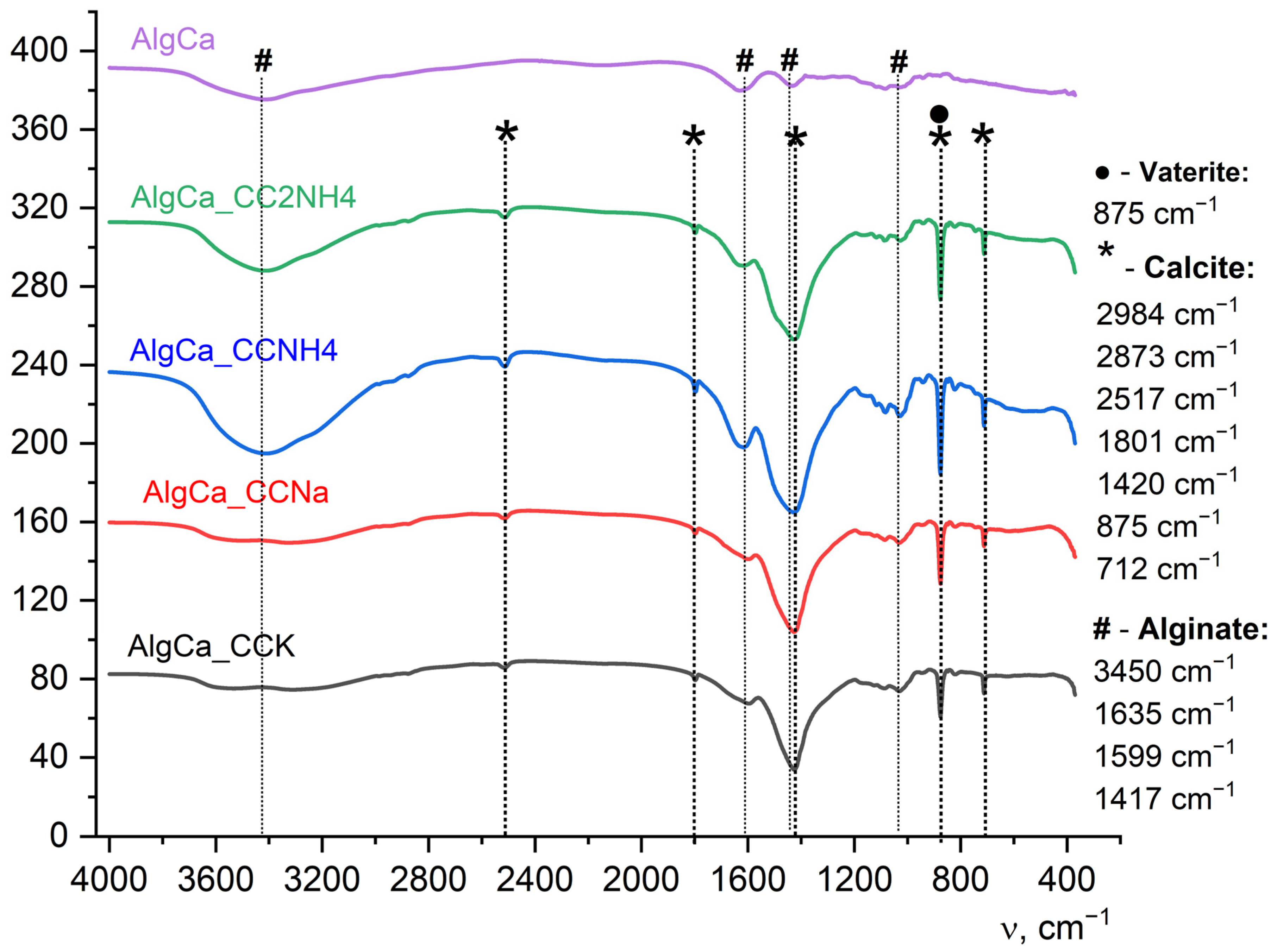 - Mihai, M.; Lotos, E.D.; Zaharia, M.M.; Bucatariu, F.; Vasiliu, A.L. Alginate-based Composite Hydrogels Formed by In Situ CaCO3 Crystallization. Cryst. Growth Des. 2024, 24, 2514–2525. [Google Scholar] [CrossRef]