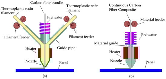 3D printing with continuous carbon-fiber-reinforced plastics. (a) Multi filament; (b) Single filament.