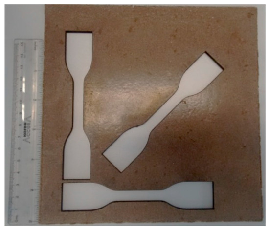 The specimens for performing tension test were cut out from a flat panel using a Trotec Speedy Laser Cutter (Trotec, Adelaide, Australia). The average thickness of the specimen was close to 5 mm and other dimensions were kept the same as described for type IV in ASTM D 638 [16]. Dog-bone samples were cut at least 0.5 mm offset and surfaces were polished using a sand paper to reduce the effect of burnt surfaces.