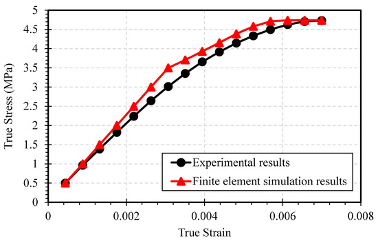 The calculated value of true stress and plastic strain was used to define the material properties such as multilinear isotropic hardening in the simulation software. The deformation rate followed in the simulation was kept the same as the one that had been used in the experiment. Mesh relevance and element size were adjusted accordingly to achieve the most accurate results. Since all the constraints and boundary conditions were the same, the simulation results were in accordance with the experimental results, and hence we could conclude that the new material definition that we described earlier is authentic.