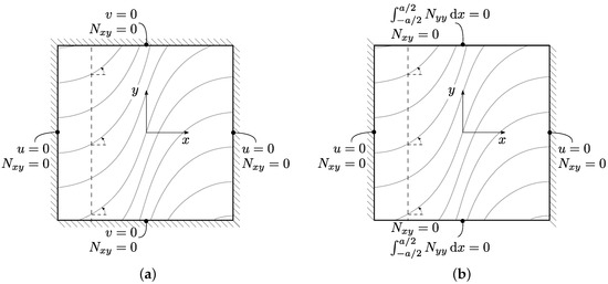 The case illustrated in Figure 2b refers to a plate that is constrained along its transverse edges to prevent the normal displacement along the x-direction. The transverse sides are free to expand or contract, but are constrained to remain straight.